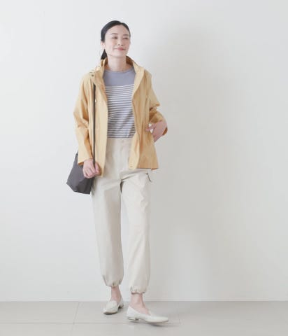 明るい色のアウター(品番:51552210)を合わせれば、春らしい軽快な着こなしに。ジャケット(品番:60112931)を羽織ったきれいめカジュアルスタイルも素敵です。