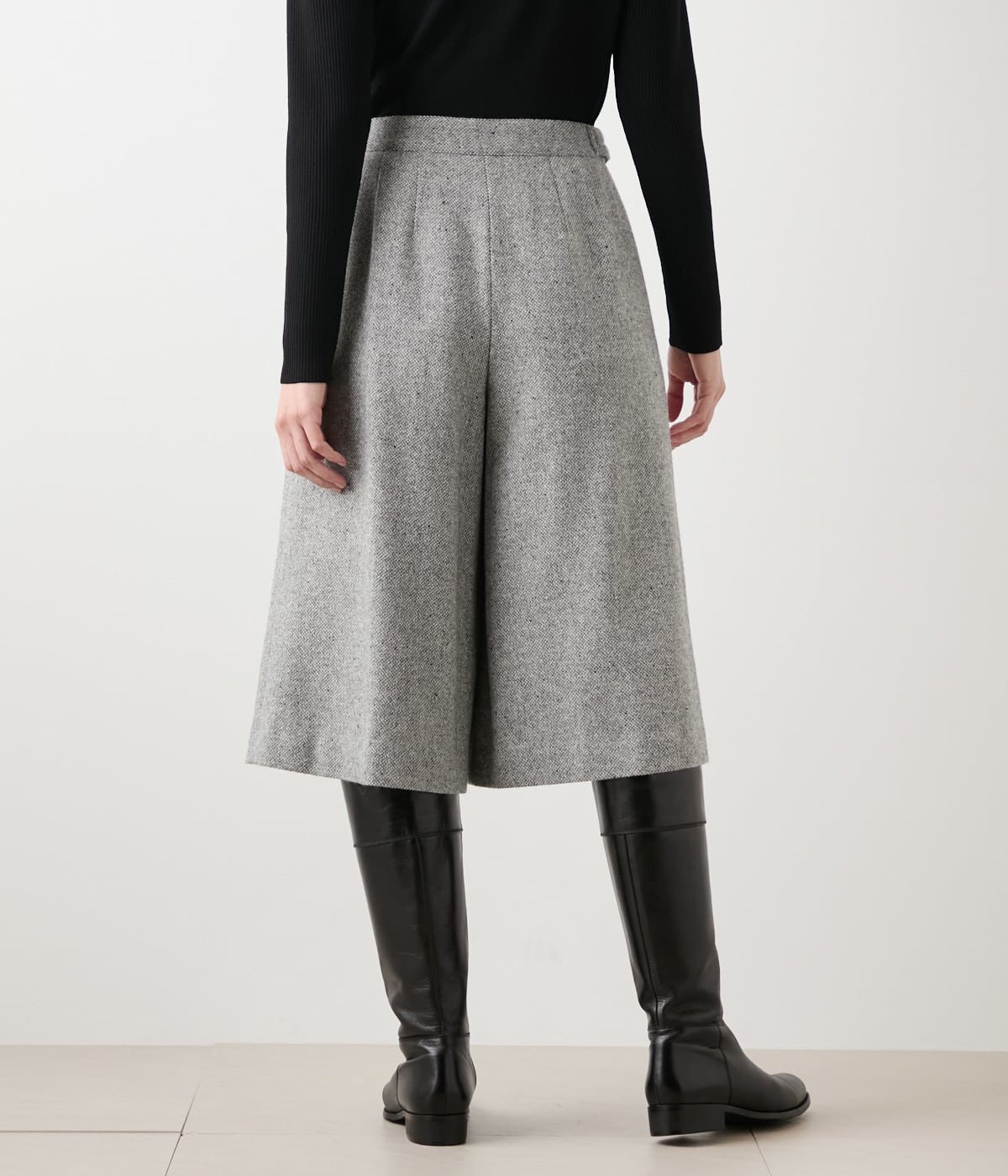 スカートのような華やかさと、パンツの動きやすさを兼ね備えたキュロットパンツ。カジュアルなアイテムながらもツィードを使用することで品のある雰囲気に。同素材のブルゾン(品番:51116162)とのコーディネートで、洗練されたセットアップスタイルもお楽しみいただけます。知的でクールな印象を楽しめるライトグレー、シーズンムードを高めてくれるブラウンの2色展開。