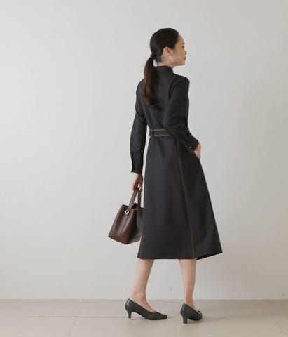 クラシカルなディテールを取り入れたシャツワンピース。1枚着はもちろん、タートルネックインナーやスカーフのレイヤードも映えるアイテムです。カラーはそれぞれネイビーの切り替えが入ったグレー、ブラウンの切り替えが入ったネイビーの2色展開。