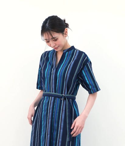 色鮮やかなマルチストライプ柄が目を惹くシャツワンピース。1枚で華やかなスタイリングが完成する、デザイン性の高い主役アイテムです。ゆったりとしたシルエットがリラクシーで、夏のリゾートスタイルにもおすすめ。カラーはフレッシュな印象のベージュ、清涼感のあるネイビーの2色展開。
