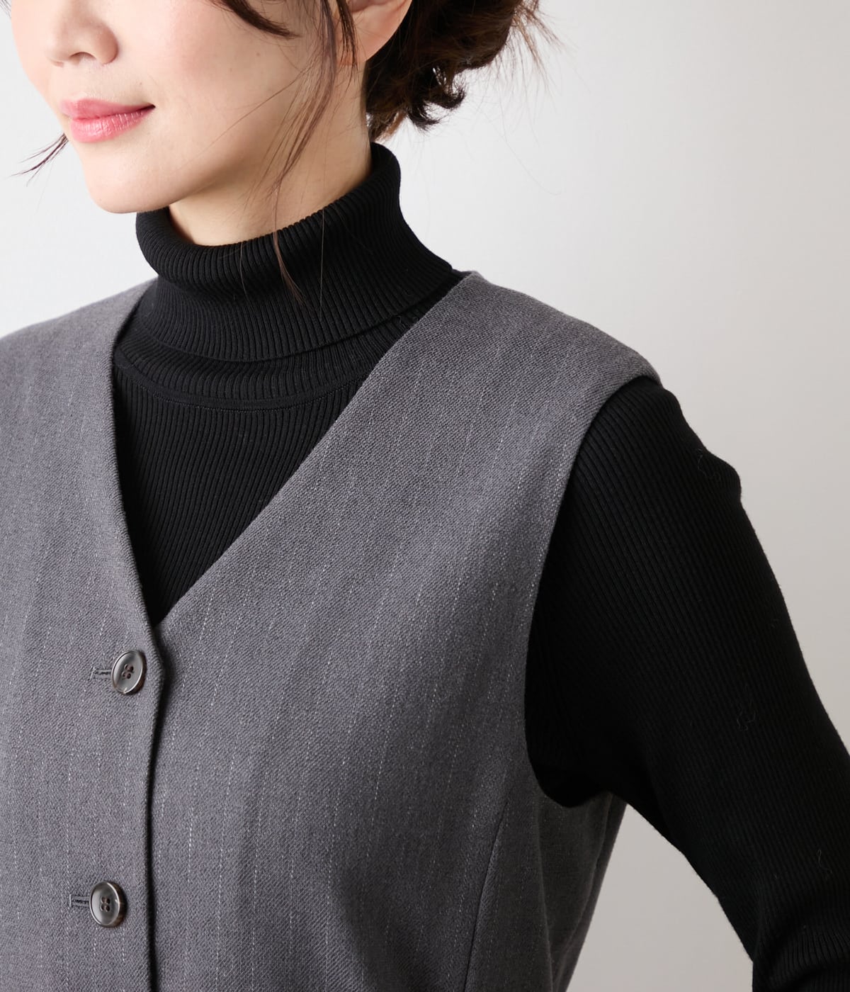 シャンブレー調のデニムっぽさを表現した、デニム調メランジストライプ生地を使用。ウールのあたたかさとほどよい光沢感があり、カジュアルな印象になりすぎず上品な風合いです。また、きれいめな風合いながらもストレッチが効いており、着心地の良さもポイント。