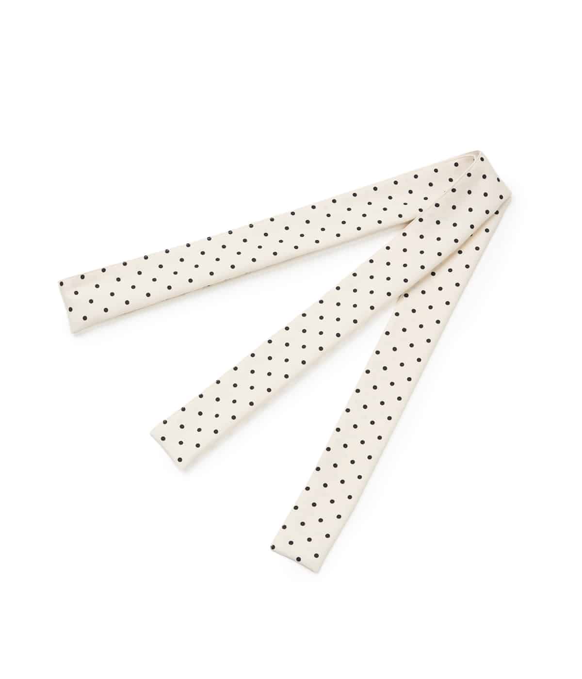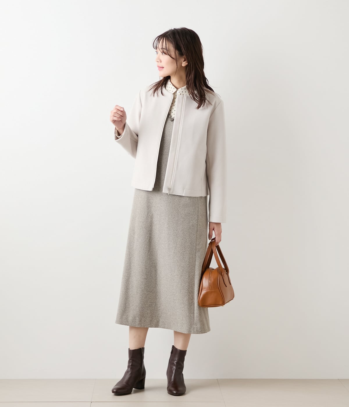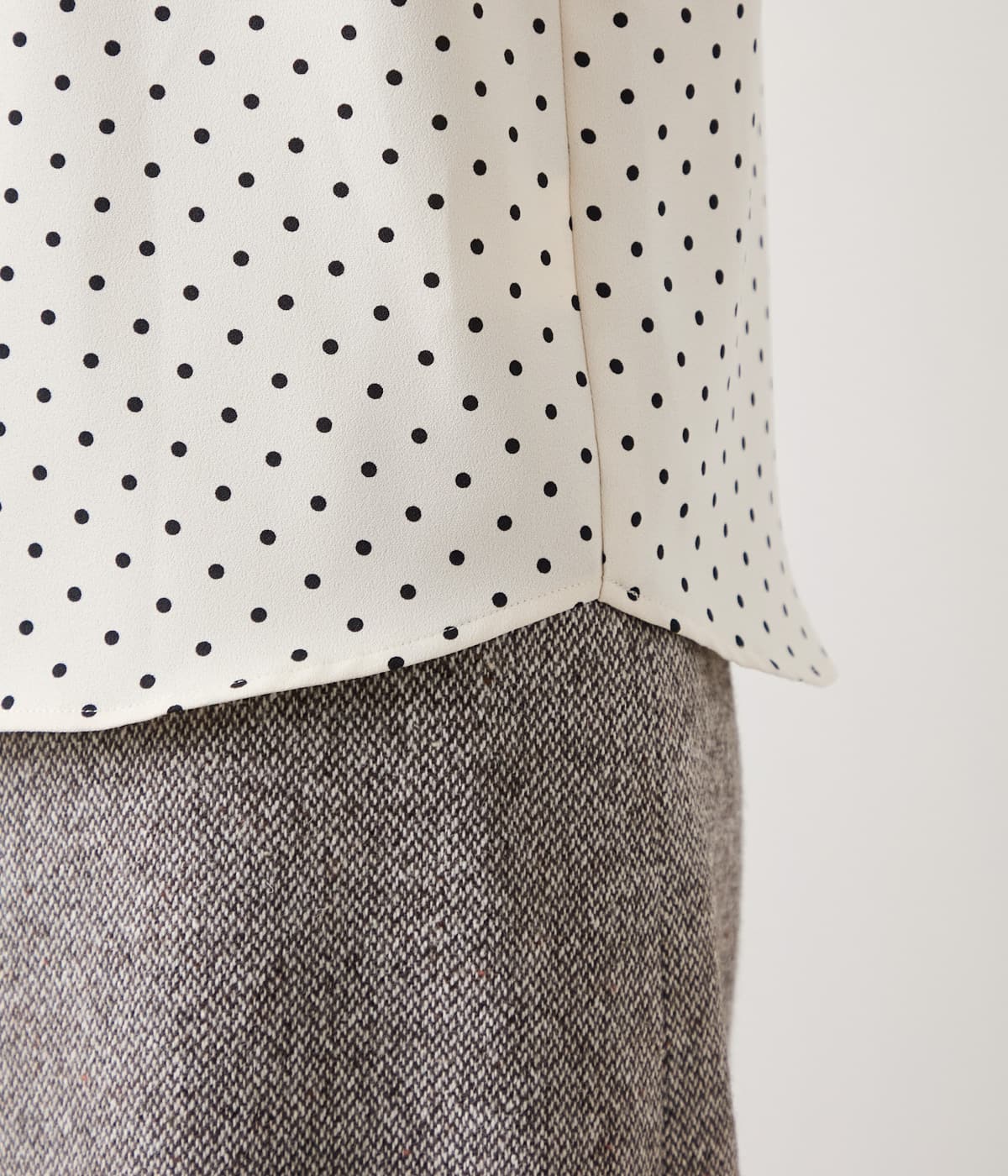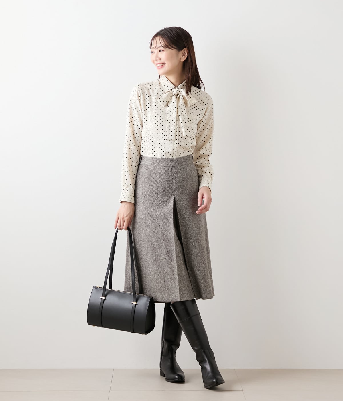 上品なドットプリントが、纏うだけで着映えするボウタイブラウス。ジャケットのインナーとしてはもちろん、ジャンスカなどとのレイヤードにも一役買ってくれる優秀アイテム。ボウタイは取り外し可能なので、オンオフ関係なくスタイリングの幅を広げてくれます。ベーシックに着回ししやすいアイボリー、シックで大人な印象に導くネイビーの2色展開。