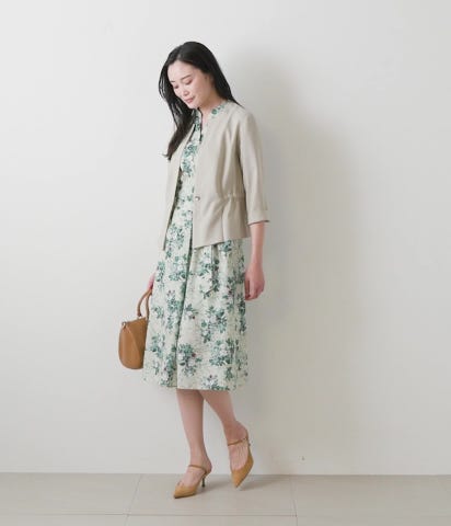 同素材のパンツ(品番:51332150)を合わせたセットアップスタイルがおすすめ。華やかなプリントワンピース(品番:51842653)に羽織れば、夏のオケージョンシーンにも活躍します。