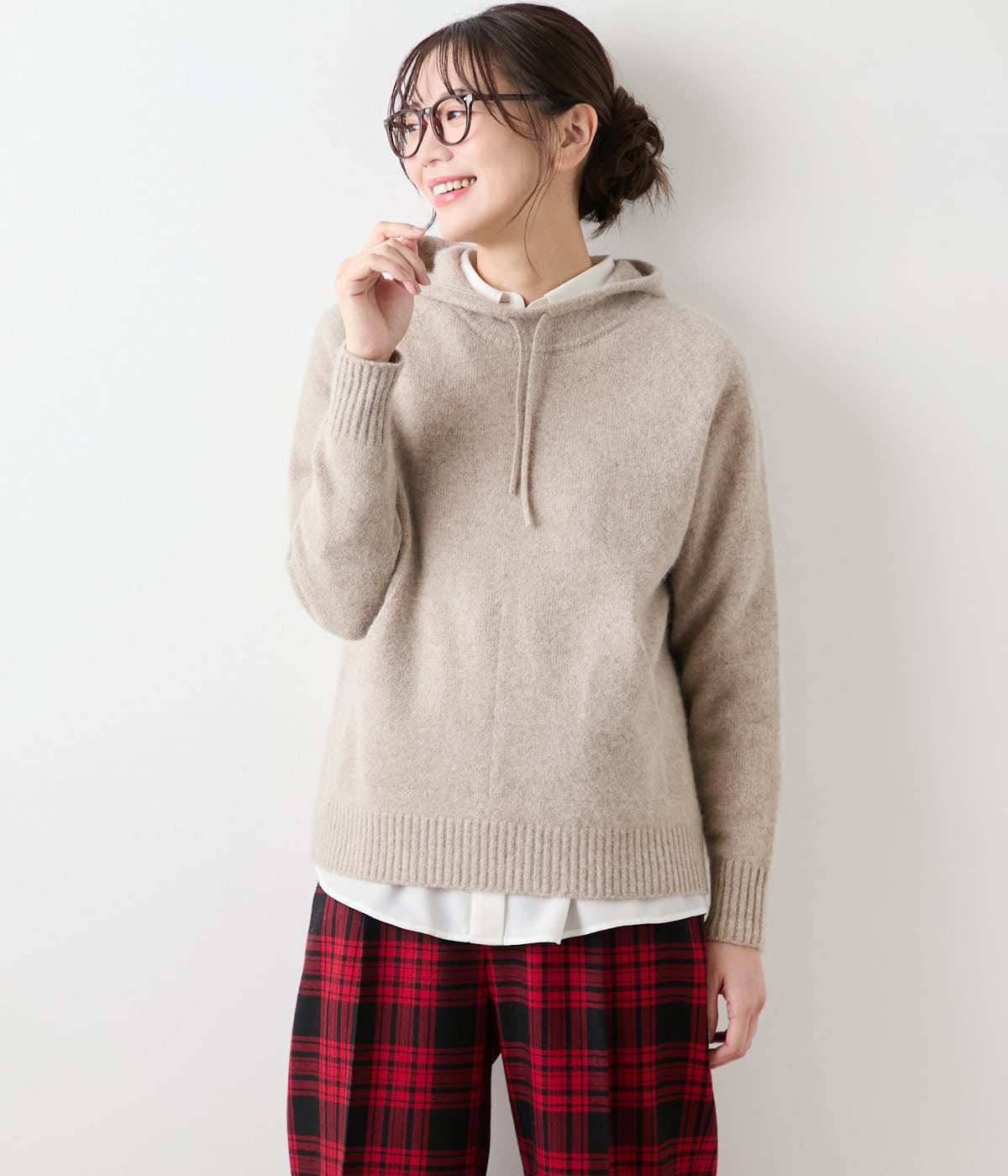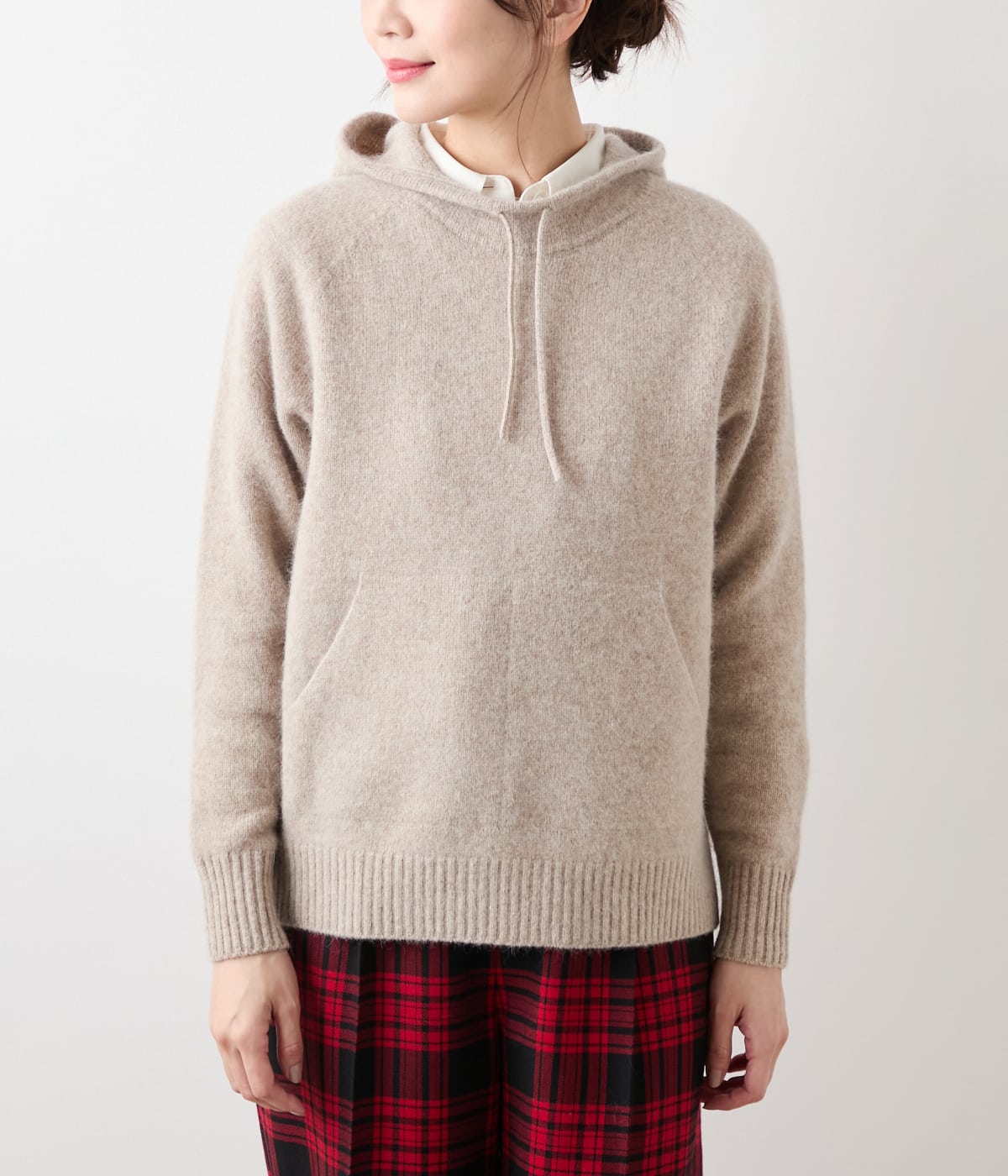 洗練カジュアルを叶える、大人のニットパーカ。カジュアルな印象のパーカを、アンゴラ混のニット素材で仕立てた大人のための1枚。ふんわりとした軽さとやわらかさで、リラックス感がありながらもきれい見えするのが魅力です。ブレザーやジャケットのインナーとして合わせれば、遊びのトラッドスタイルも楽しめる汎用性の高いアイテム。トレンドに左右されず長く愛せる、落ち着きのあるナチュラルなライトグレー・ベージュの2色展開。