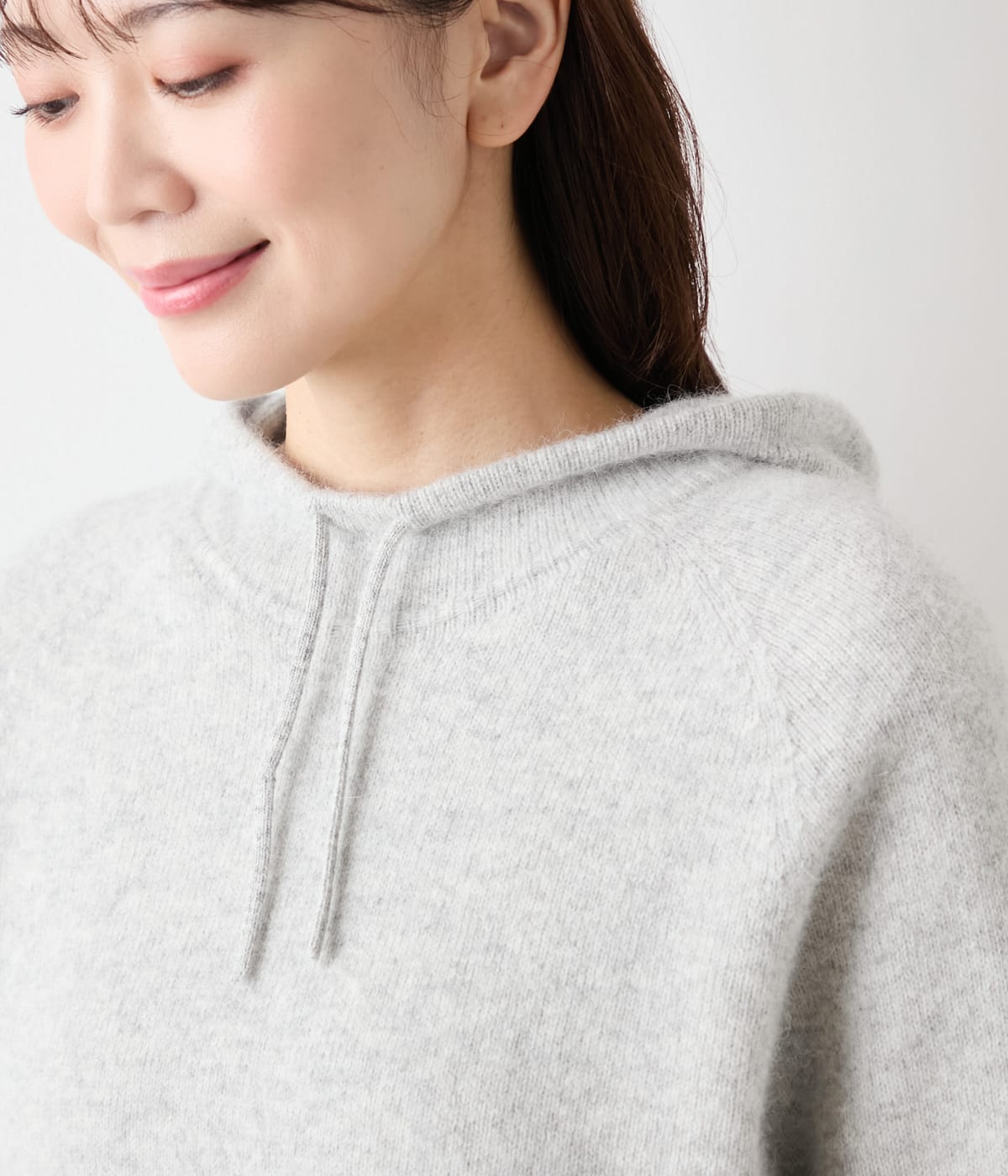 最大の特徴は、ホールガーメントで仕立てたフーディ―デザイン。編み機の技術の向上により、フードやポケットまで縫い目のない無縫製で仕立てることが可能に。ミニマルな設計が素材の風合いを際立たせ、カジュアルすぎず大人の雰囲気に仕上がっています。