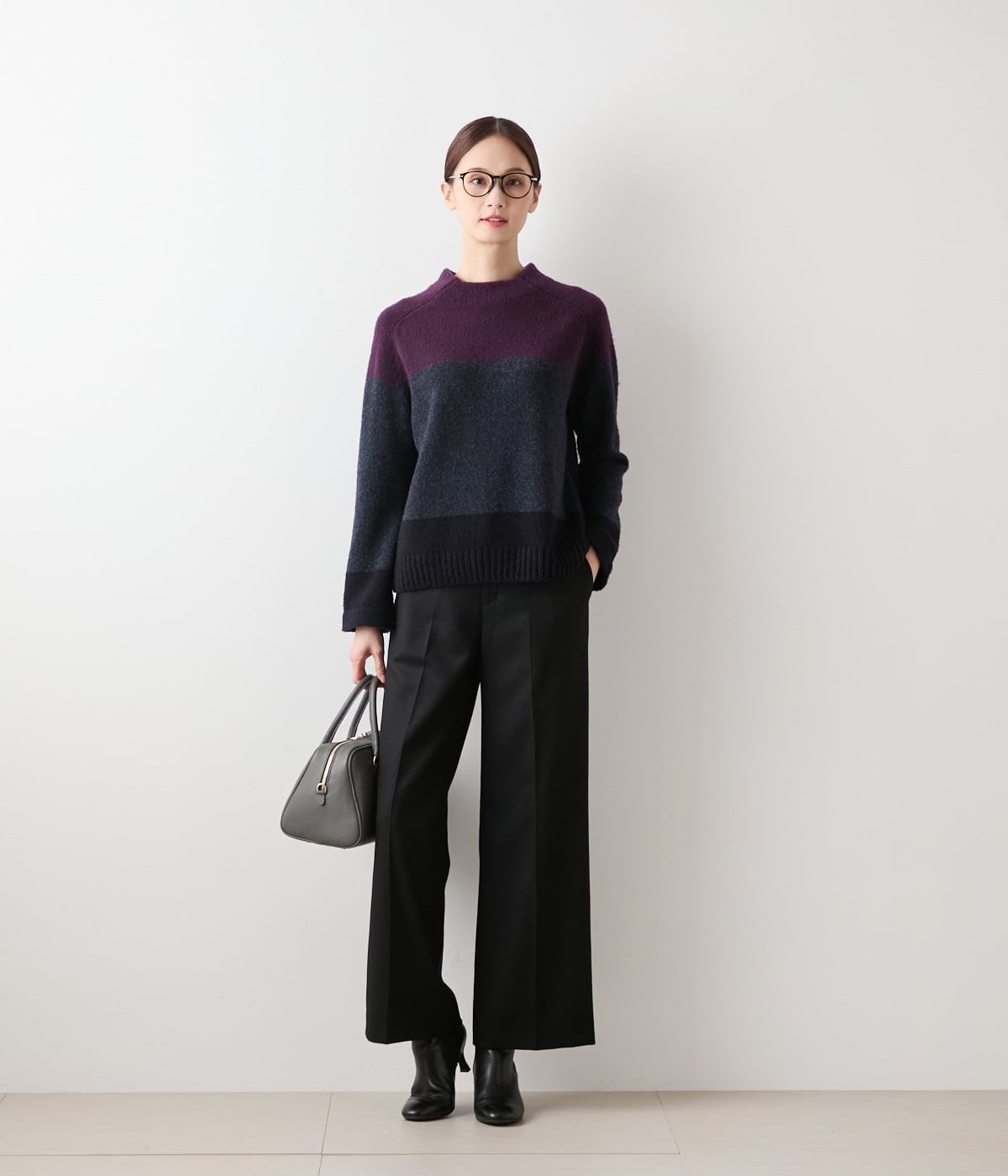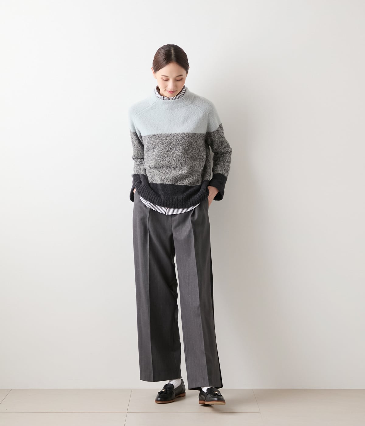 色の重なりを楽しむ、大人の配色ニット