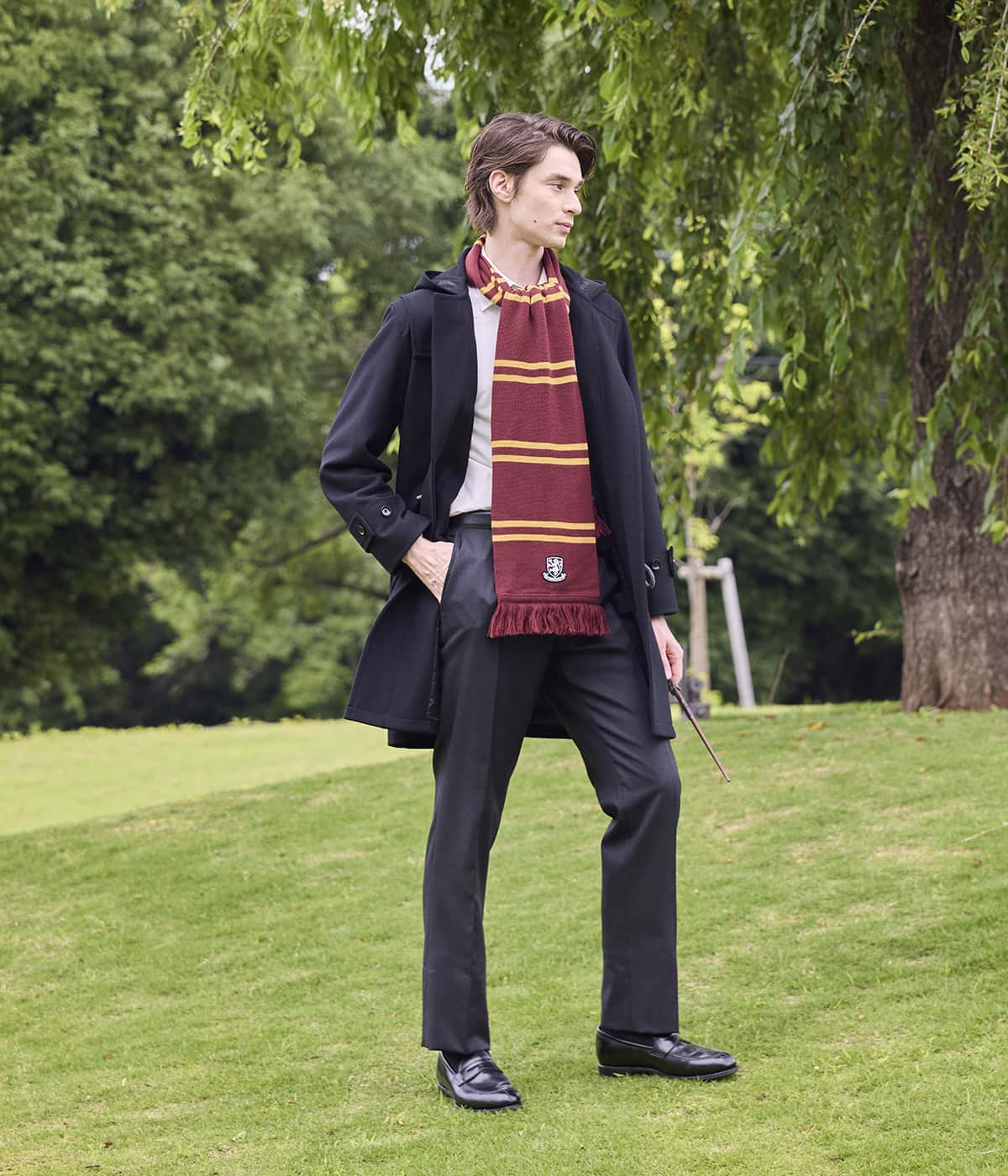 ハリー・ポッターの再現度が高まる、ローブショートダッフルコート(品番:51553863)ローブダッフルコート(品番:85463863)とのコーディネートがおすすめ。グリフィンドール・スリザリン・ハッフルパフ・レイブンクロー、各寮別のネクタイ(品番:85903084)(品番:85903085)(品番:85903086)(品番:85903087)もご用意しておりますので、ぜひ寮のカラーを統一して映画の世界観をお楽しみください。また、ロゴ刺繍がポイントのメンズオックスシャツ(品番:85703320)や、普段使いしやすいロゴトートバッグ(品番:85923685)のご用意もございます。