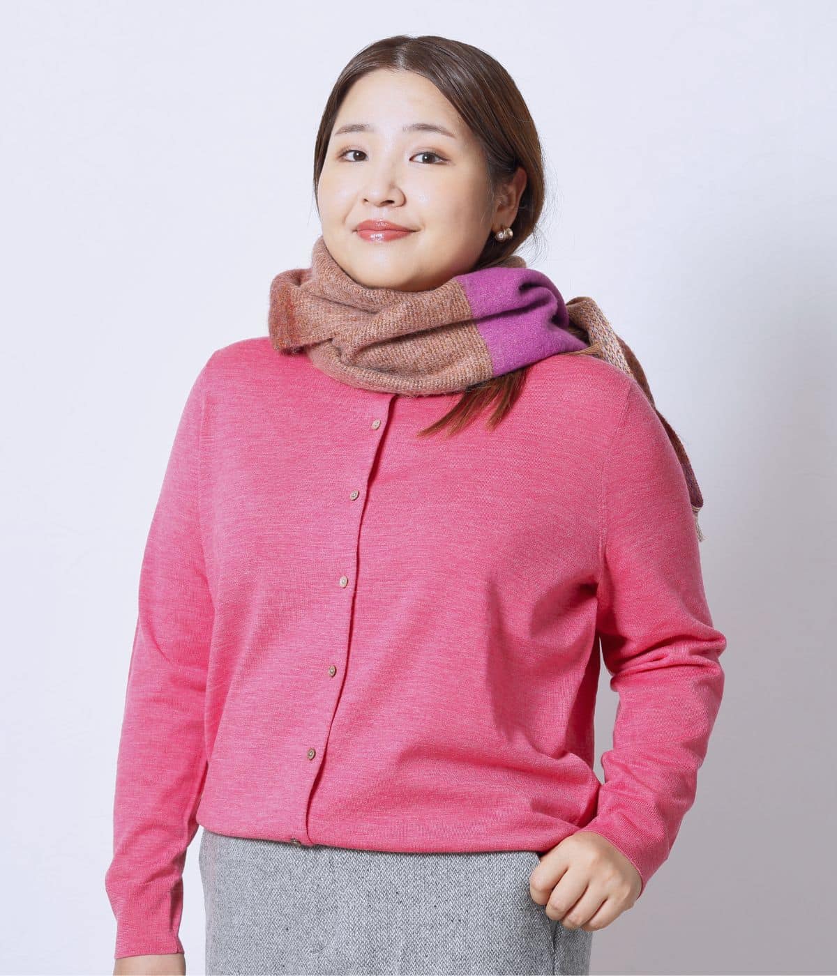 表情豊かな配色に加え、端のフリンジもカラフルに仕上げられており、アクセントとしても存在感を発揮。コートやニットスタイルに華やかさを添える、主役級のアイテムです。