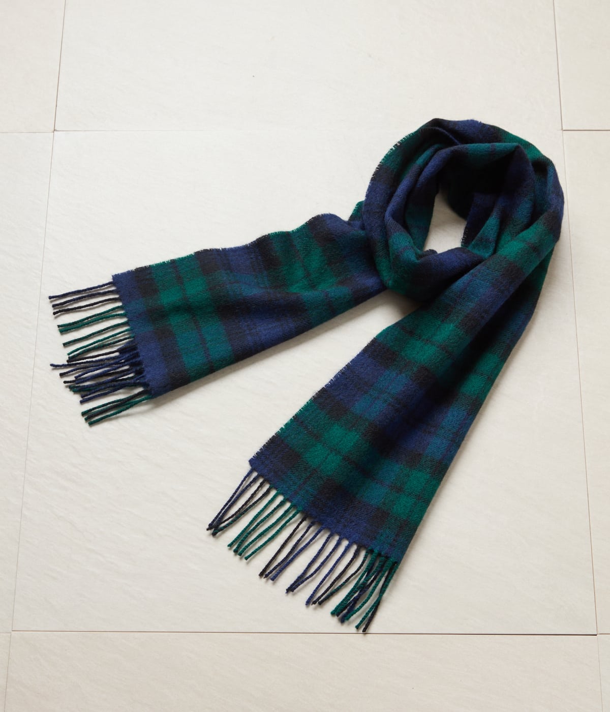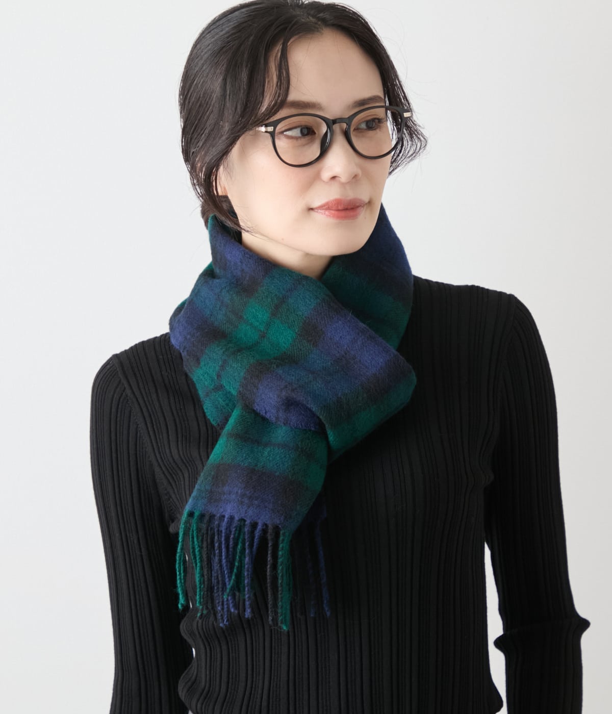 ウール100%の温もりを感じる、ブラックウォッチ柄のマフラー。軽やかなのにしっかり暖かく、冬の外出を快適に。ご自身用にはもちろん、お世話になった方へのギフトとしてもおすすめです。