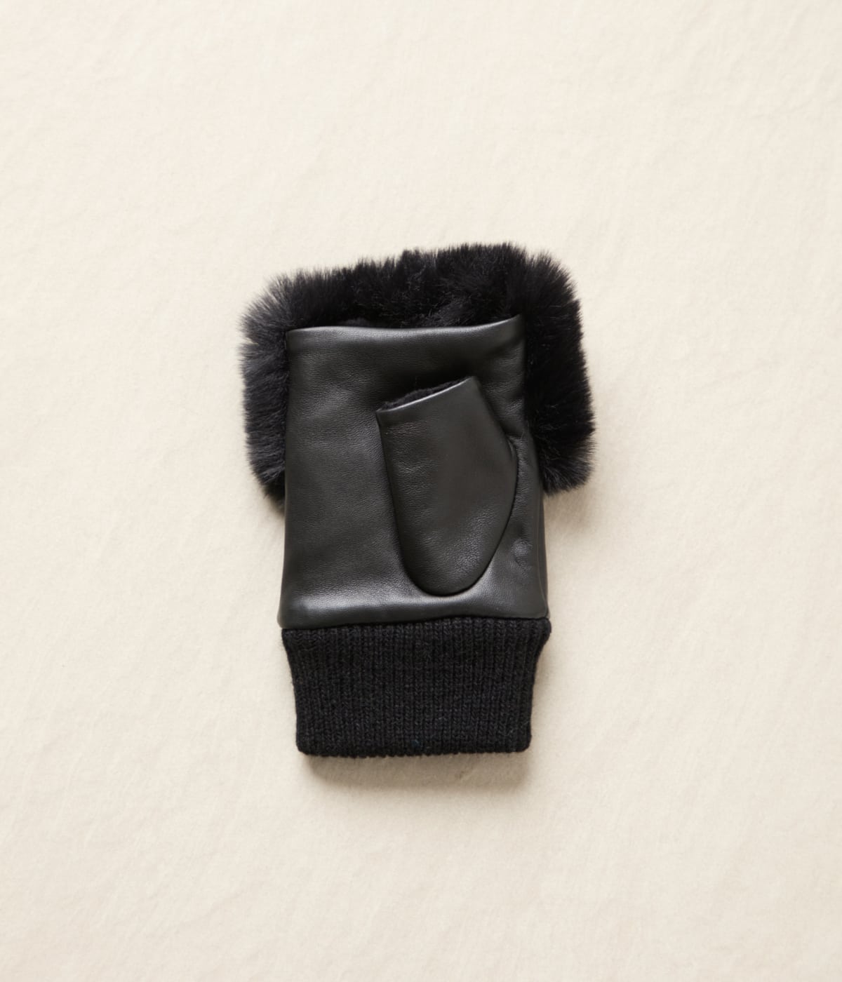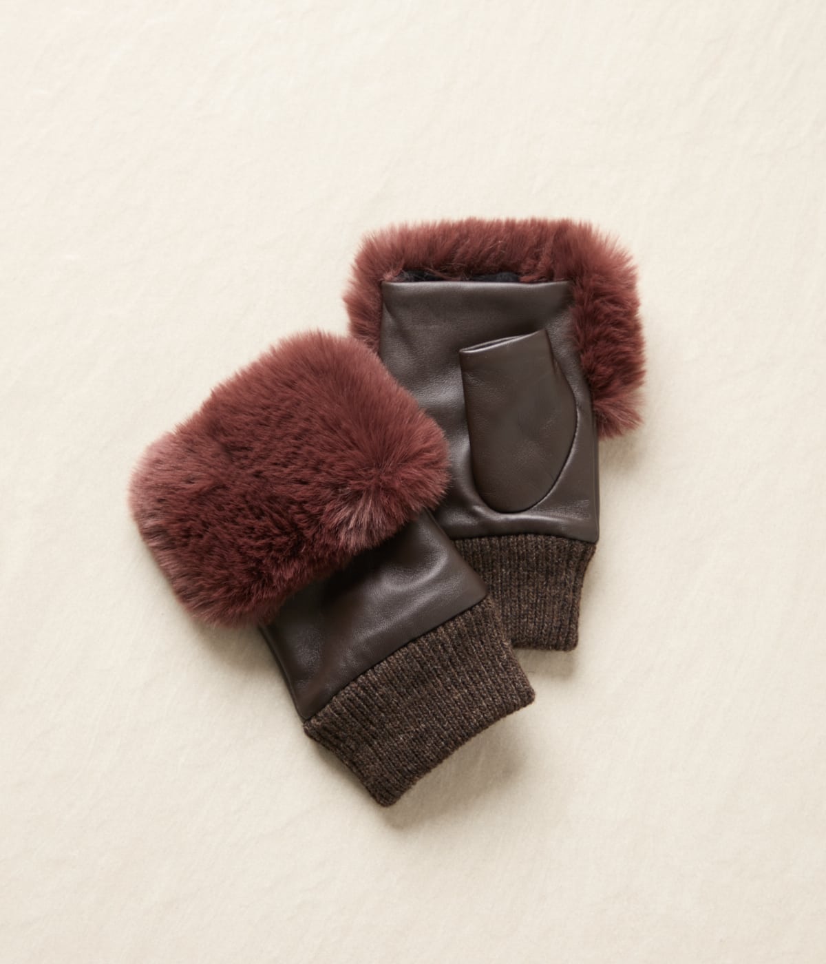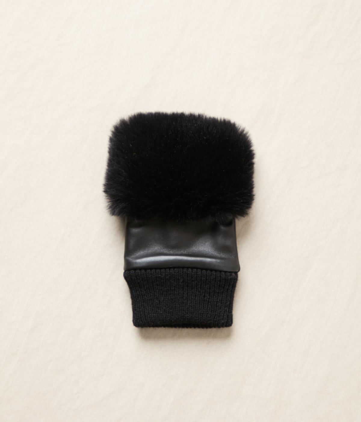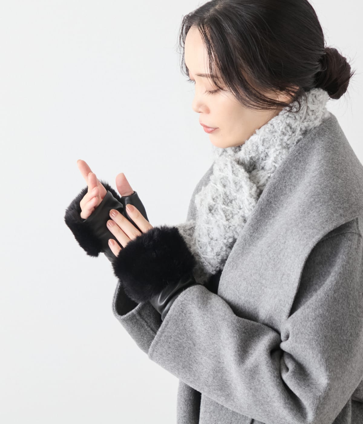 やわらかなラム革にファーをあしらった、上品な印象のファーミトン。手元をしっかり包み込みながらも、スマートフォンやゲーム機の操作がしやすいデザインで、冬の外出を快適にサポートします。シンプルで洗練された印象を与えつつ、スタイリングに自然に溶け込む、ベーシックなブラック・ダークブラウンの2色展開。