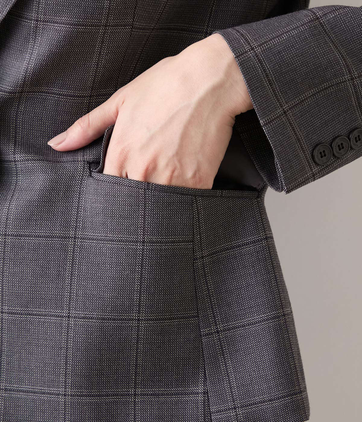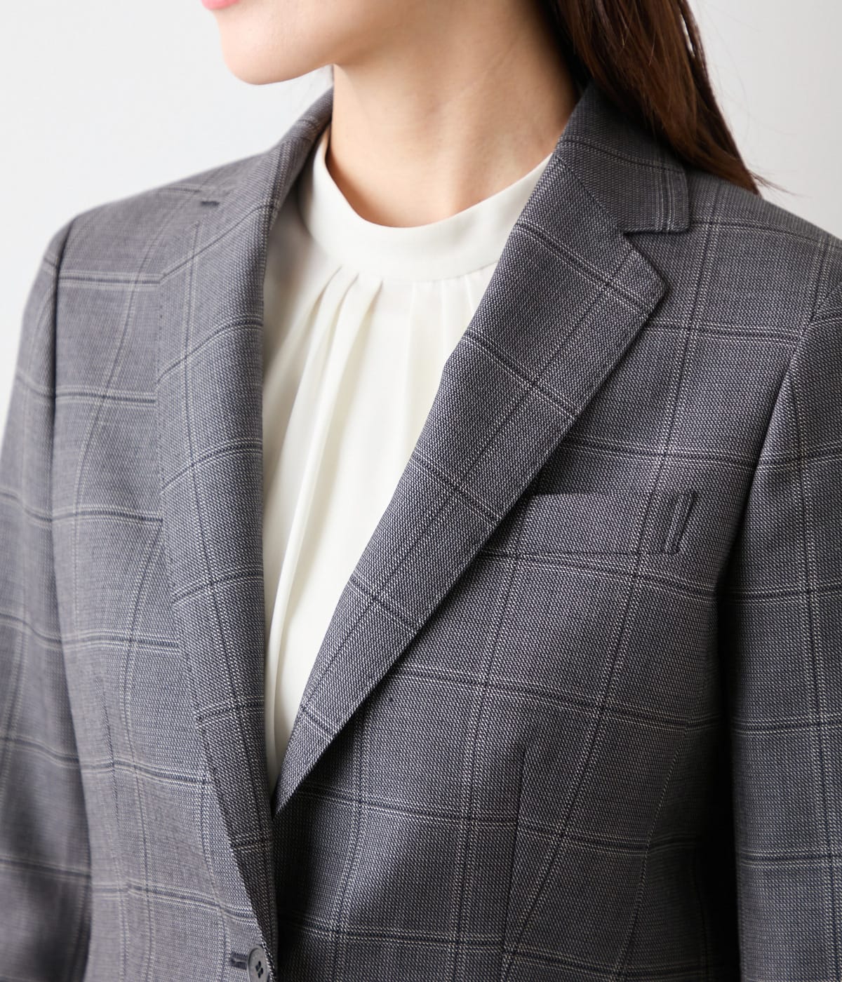 クラシックな気品と現代的な洗練を兼ね備えた、ウインドウペイン柄のセットアップ対応ジャケット。縦横に交差する細いラインが生み出すウインドウペインは主張しすぎず、落ち着いた同系色の配色が知的でスタイリッシュな印象を演出してくれます。フォーマル度が高い場にはもちろん、日常のビジネスシーンでも活躍してくれる、グレーとダークブラウンの2色展開。