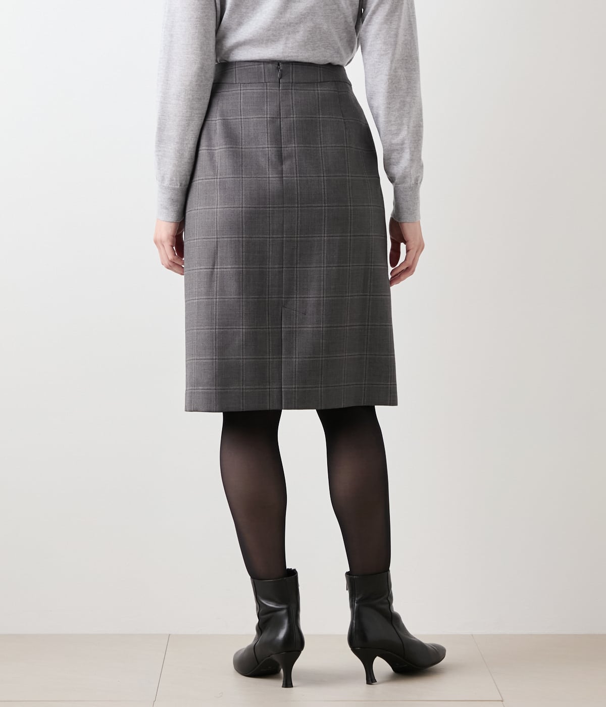 クラシックな気品と現代的な洗練を兼ね備えた、ウインドウペイン柄のセットアップ対応のストレートスカート。縦横に交差する細いラインが生み出すウインドウペインは主張しすぎず、落ち着いた同系色の配色が知的でスタイリッシュな印象を演出してくれます。フォーマル度が高い場にはもちろん、日常のビジネスシーンでも活躍してくれる、グレーとダークブラウンの2色展開。