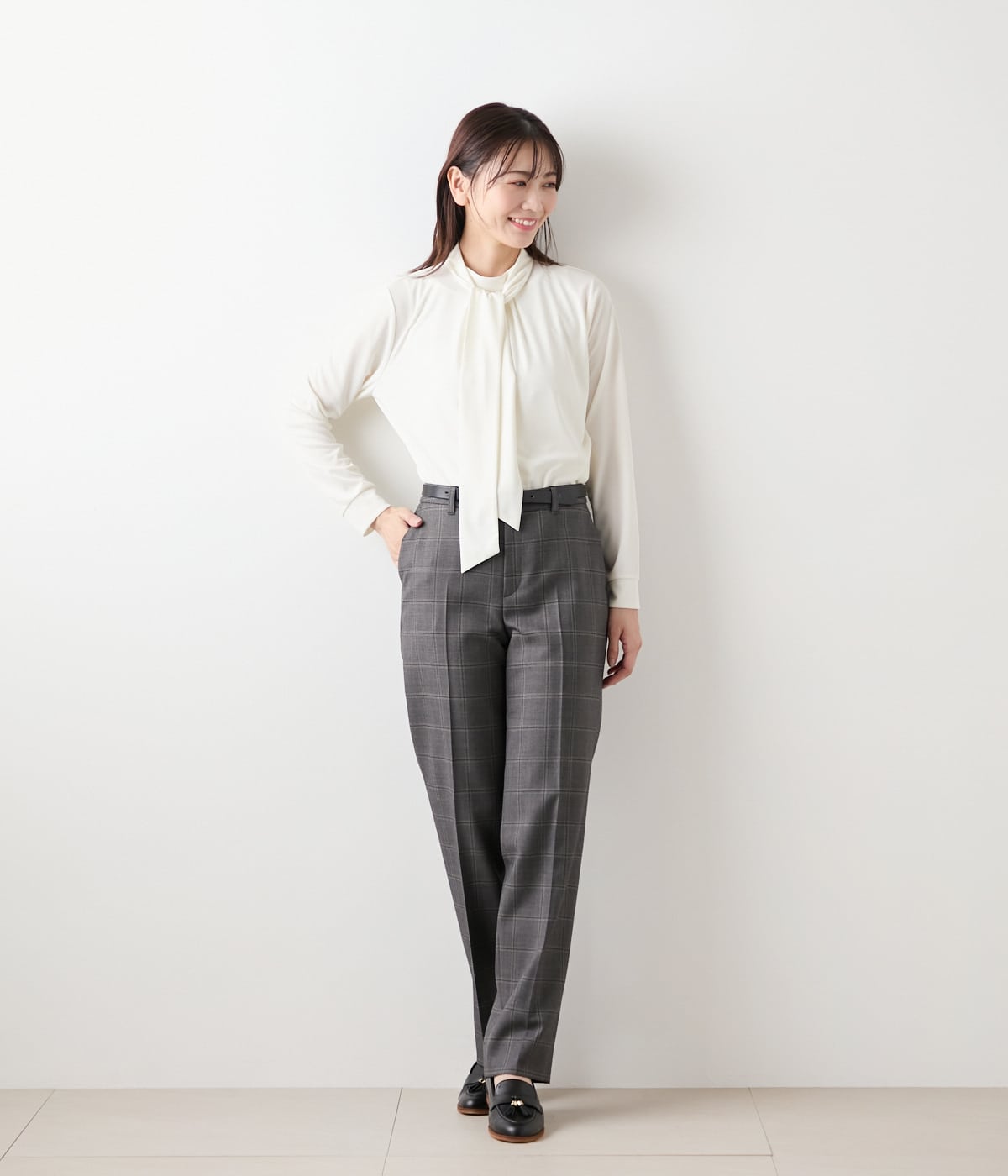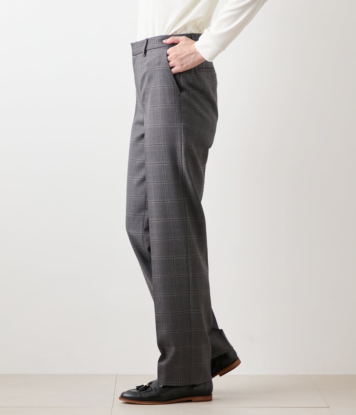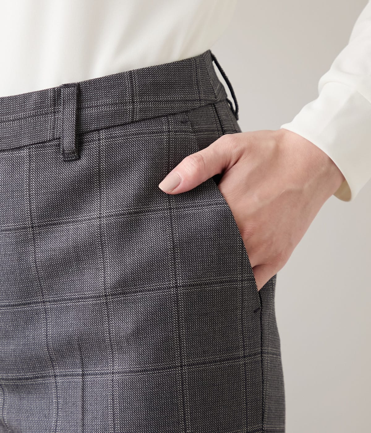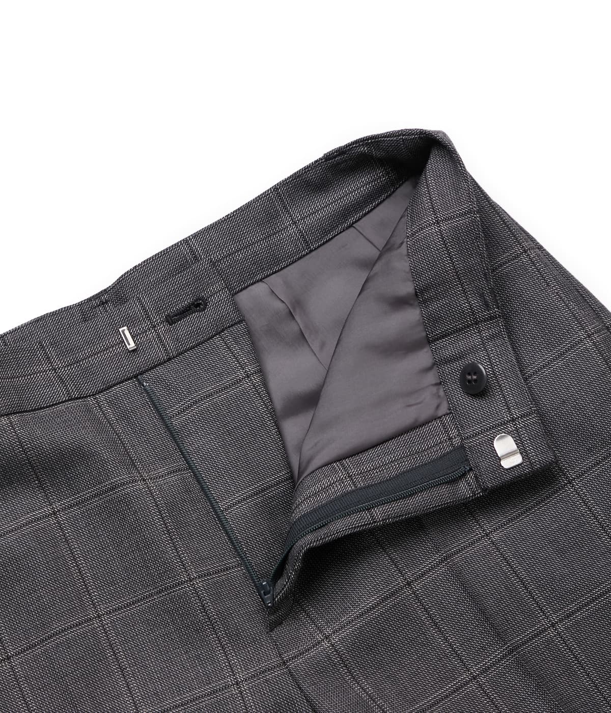 クラシックな気品と現代的な洗練を兼ね備えた、ウインドウペイン柄のセットアップ対応のストレートパンツ。縦横に交差する細いラインが生み出すウインドウペインは主張しすぎず、落ち着いた同系色の配色が知的でスタイリッシュな印象を演出してくれます。フォーマル度が高い場にはもちろん、日常のビジネスシーンでも活躍してくれる、グレーとダークブラウンの2色展開。