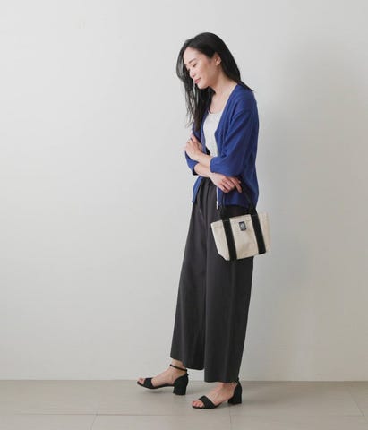 清涼感のある和紙混ニット(品番:54712650)(品番:54752650)を合わせれば、夏らしい爽やかな着こなしに。無地のTシャツ(品番:54852553)と合わせてシンプルにまとめれば、旅行にもぴったりのリラックススタイルが完成します。