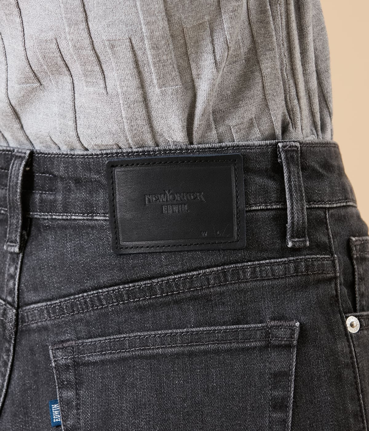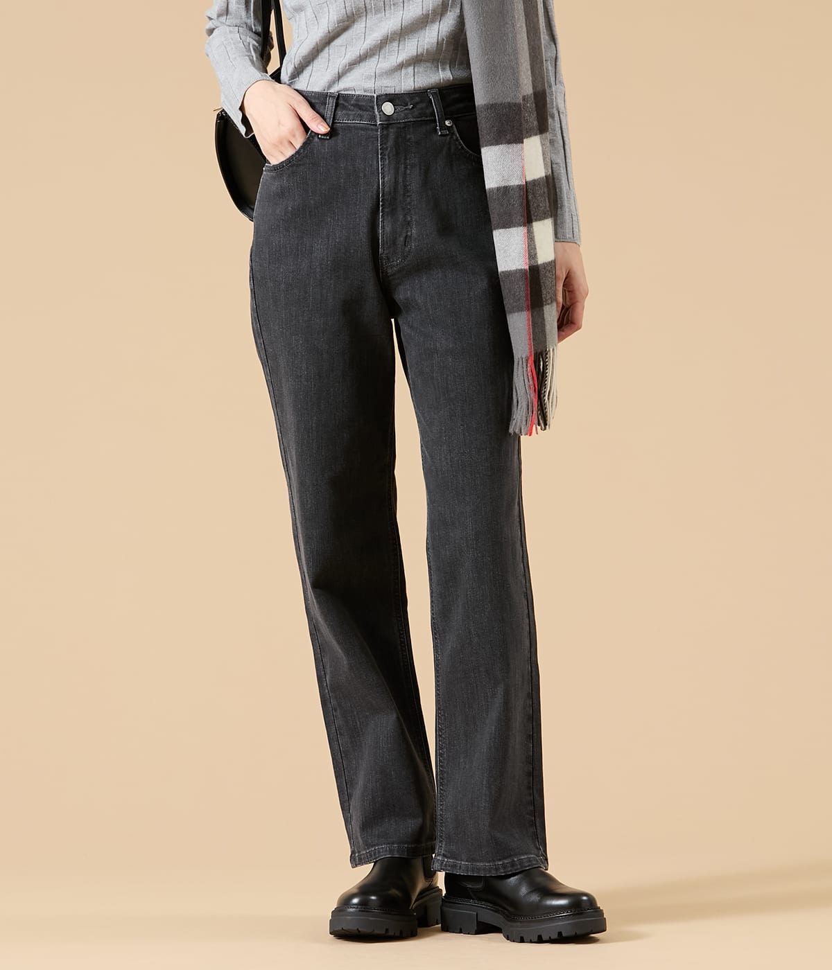 シックで洗練された表情が魅力の、EDWINコラボのブラックデニム。濃色の落ち着いたトーンが大人の着こなしにすっと馴染み、いつものニットやジャケットスタイルを新鮮にアップデートしてくれる1本です。きれいめにもカジュアルにも合わせやすく、万能なワードローブとして活躍します。