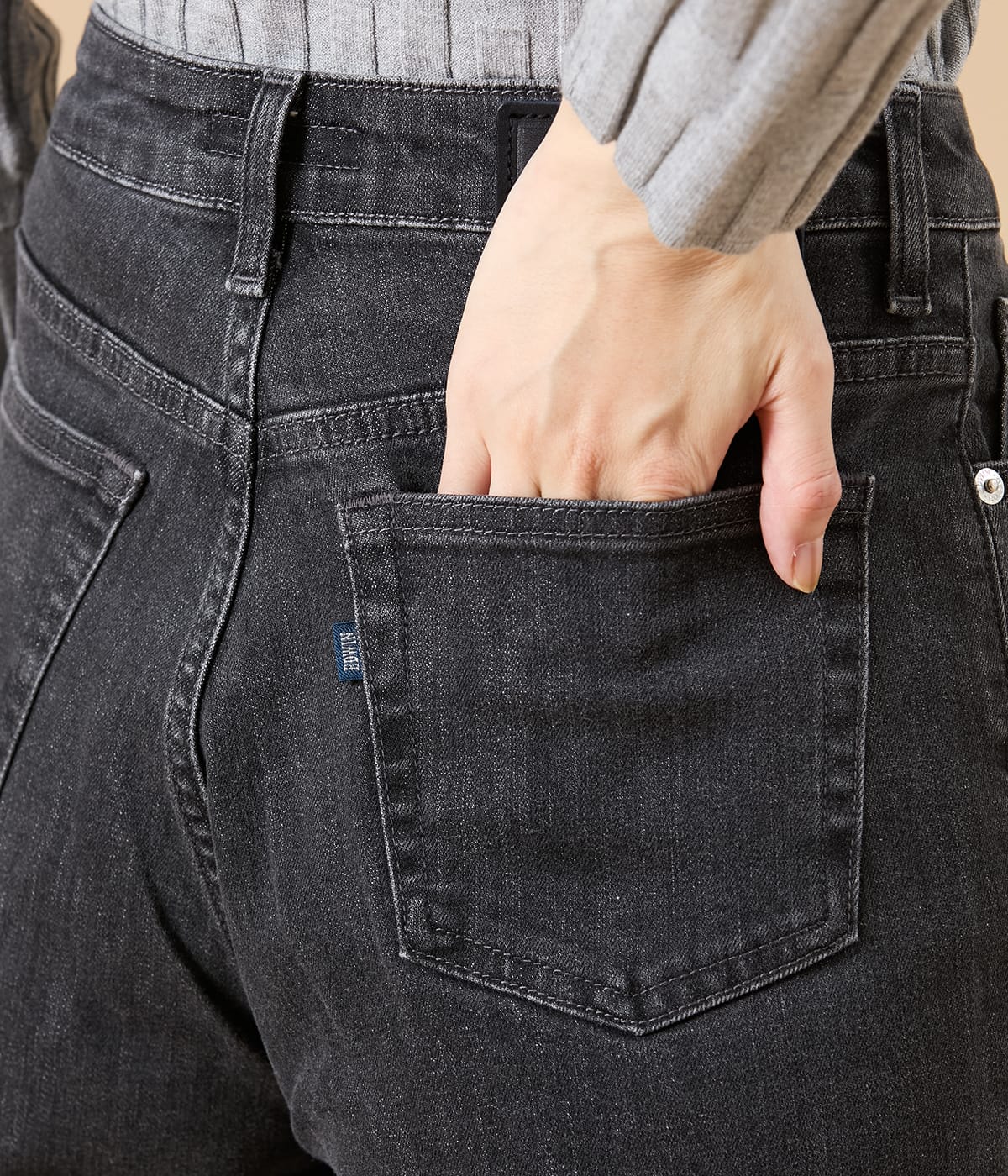 しっかりとした肉感を持つ11オンスデニムを使用。ストレッチ性があり、動きやすく快適な履き心地。シックな印象をつくるブラックカラーが、スタイリング全体を引き締めてくれます。