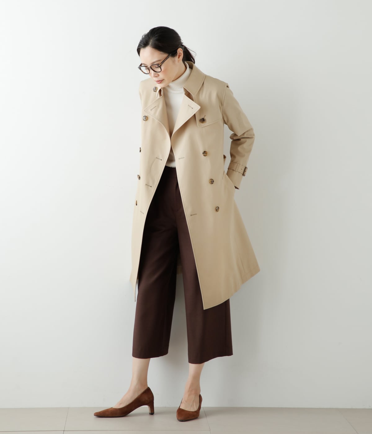 横方向のストレッチが快適な穿き心地を叶えるカルゼ素材。適度に温かみを感じさせるミルド仕上げにより、秋冬の着こなしに馴染むタッチにしています。