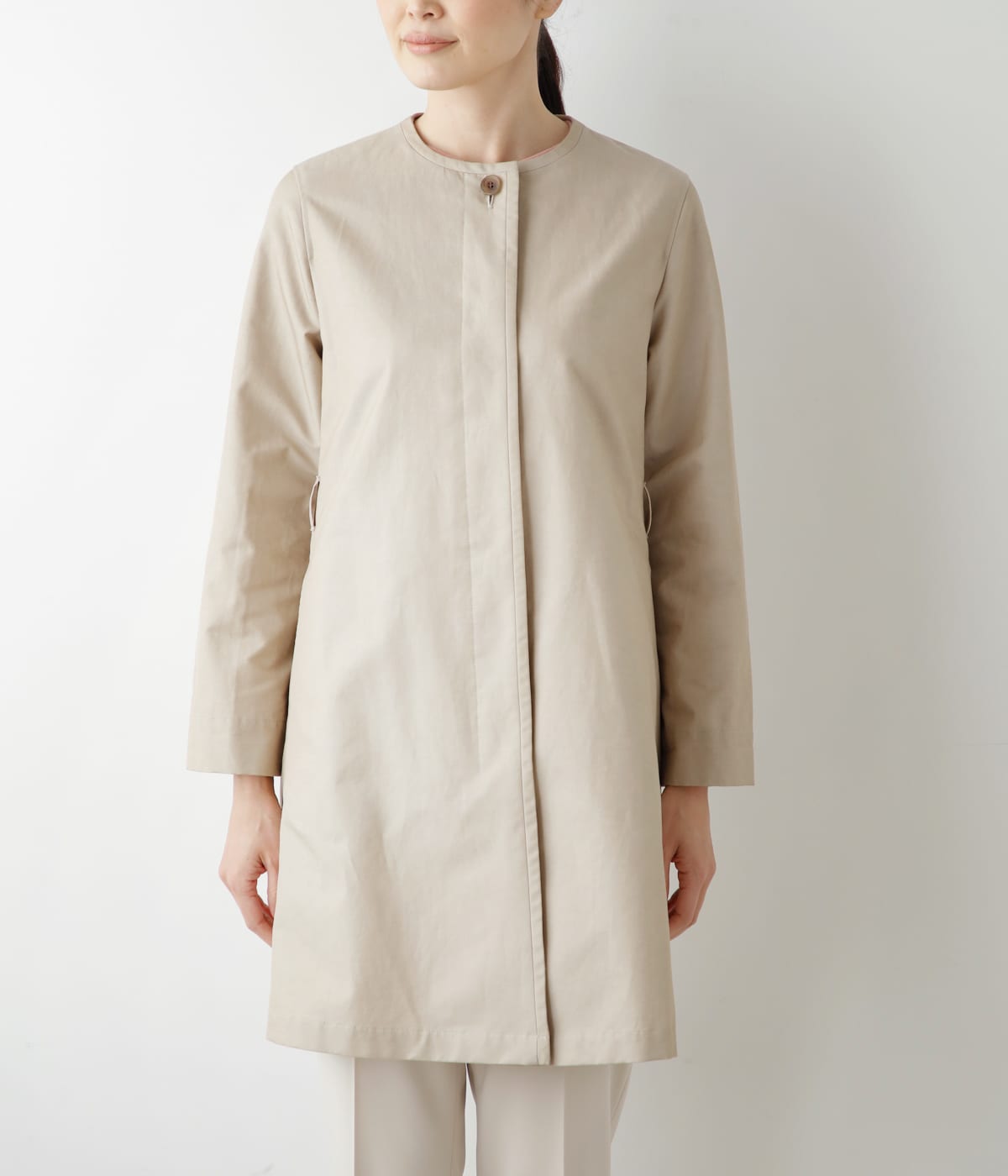 軽やかな着用感が魅力のノーカラーコート。シンプルなデザインで幅広い着こなしにマッチする、汎用性の高いアイテムです。付属のベルトでアレンジが楽しめるのもポイント。カラーはナチュラルな表情のベージュ1色展開です。
