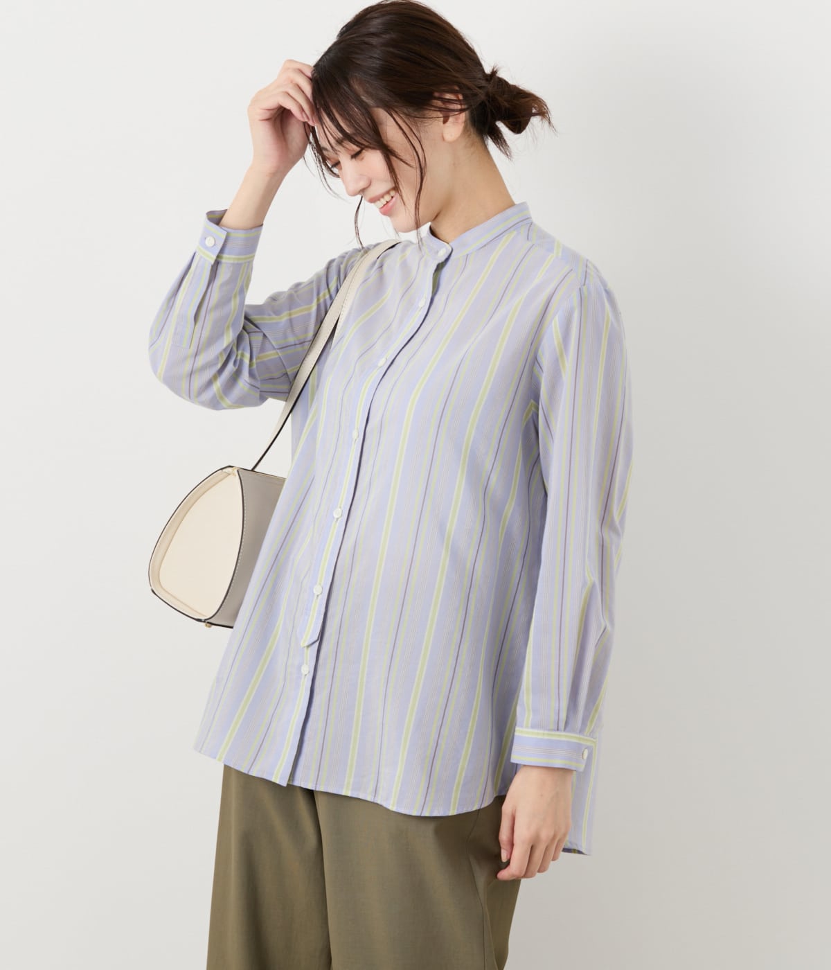 カジュアルスタイルの主役になるマルチストライプシャツ。パステルカラー×ブラウンの優しいカラーリングが、春夏の着こなしを軽やかに彩ります。ゆったりとしたサイズ感で、堅い印象にならずトレンドライクに決まるアイテムです。カラーは程よく甘さのあるライトグリーン、爽やかなサックスの2色展開。