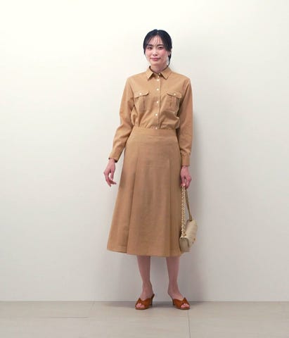 トレンドのサファリルックにぴったりな、胸ポケットをあしらった長袖シャツ。麻混ならではのさらりとした風合いが心地よく、ロングシーズン活躍するアイテムです。同素材のスカート(品番:54255261)を合わせたワンピース風スタイルもおすすめ。カラーは優しい表情のキャメル、落ち着きと気品を感じるネイビーの2色展開です。