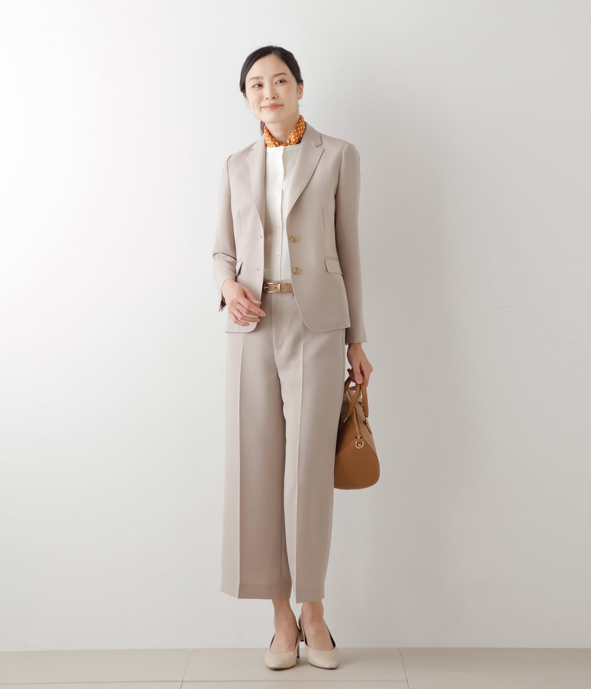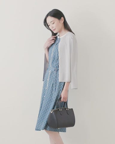 プリントワンピース(品番:54452130)に羽織れば、上品なお出かけスタイルに。スーツ(品番:54012351)(品番:54312351)のインナーとして、ビジネスシーンでの着用もおすすめです。