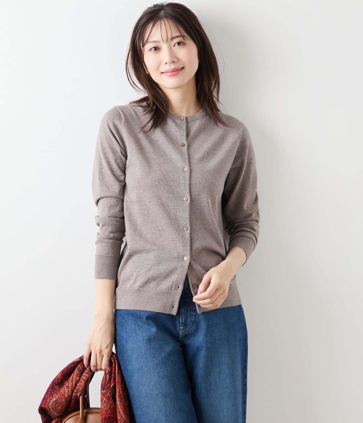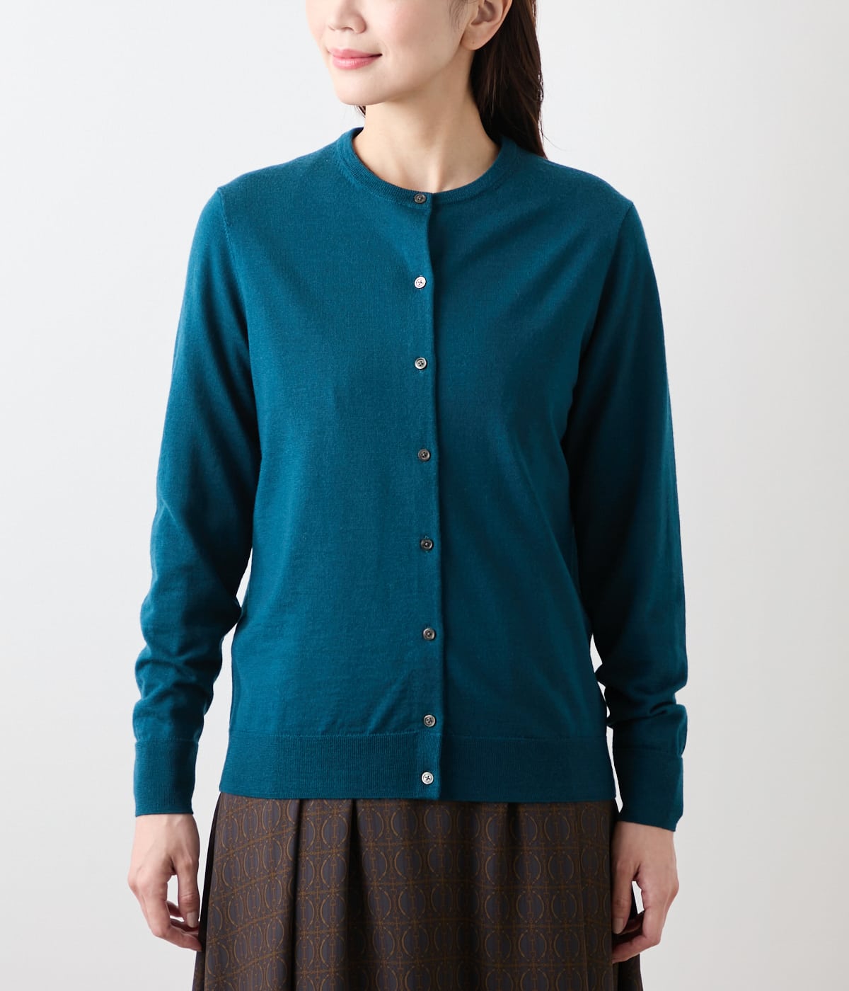 毎年好評のキャッシュウールを使用した、定番クルーネックカーディガン。上質素材が映えるシンプルなデザインで、トレンドに左右されず永くご愛用いただけるアイテムです。同素材のプルオーバー(品番:51726560)とのアンサンブルスタイルもおすすめ。カラーは定番色から差し色まで豊富に取り揃えた、ライトグレー・ブラウン・ボトルグリーン・ネイビー・パープルに、店舗限定のピンクを加えた全6色展開。