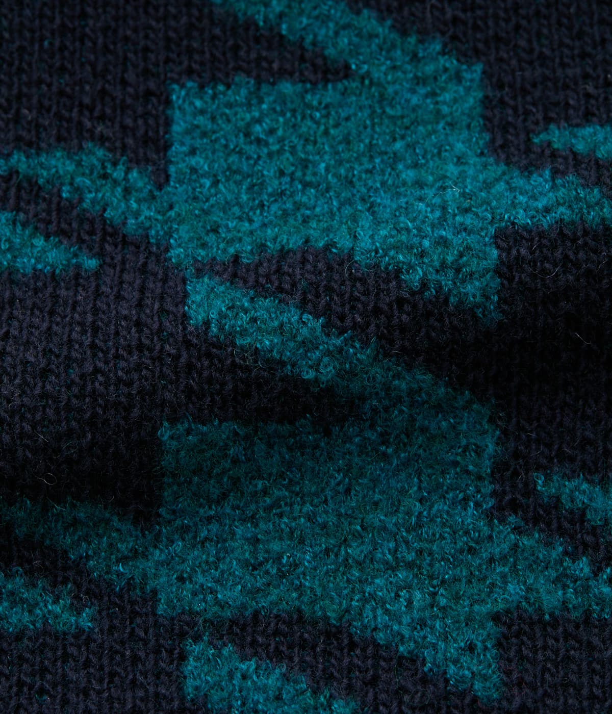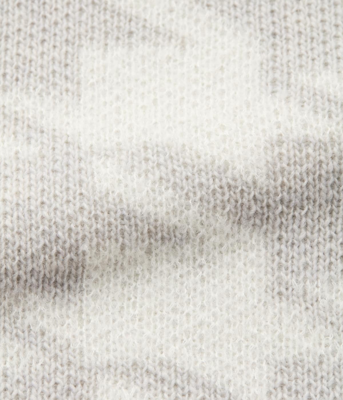 異素材の糸を組み合わせて表現した、奥行きのある千鳥柄が印象的なニットプルオーバー。身頃と袖で柄の大きさを変え、さりげなくメリハリを効かせたデザインです。デニムやスカートなど、合わせるボトム次第でカジュアルにもきれいめにも活躍します。ホワイトベースにライトグレーの配色、グリーンベースにネイビーの配色の2色展開。