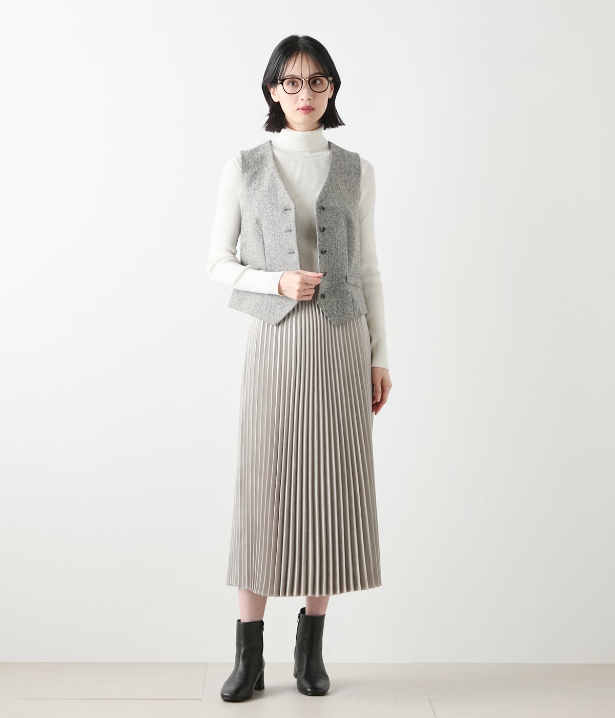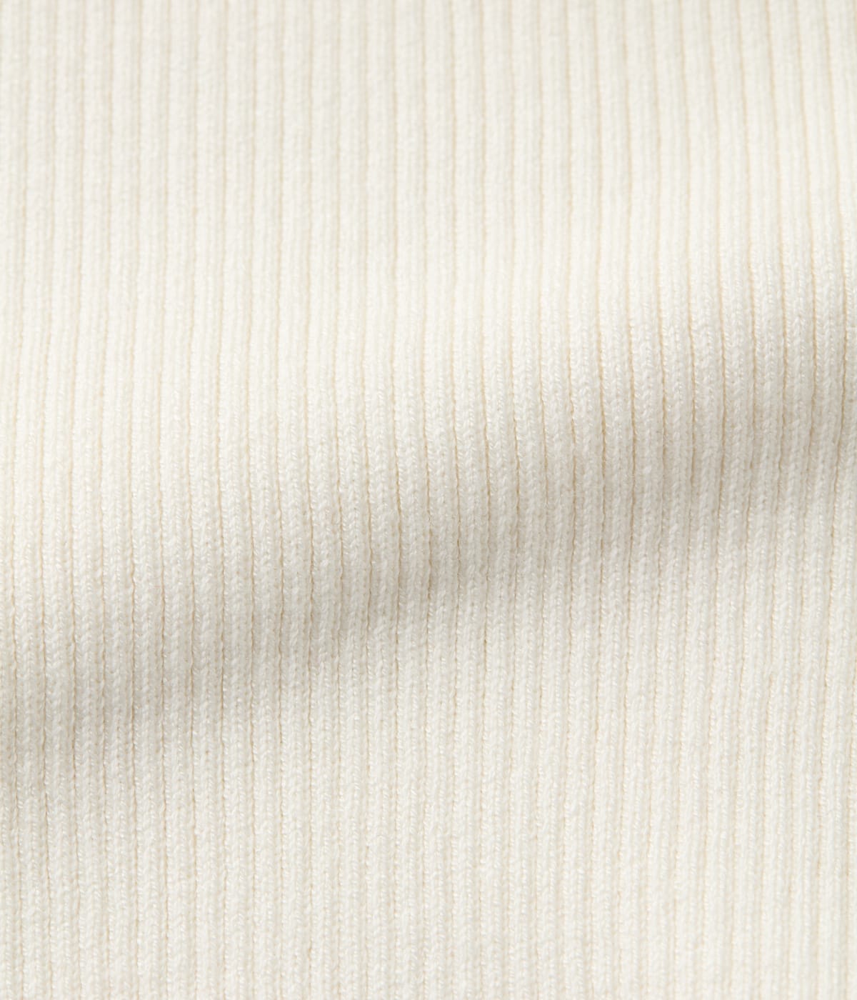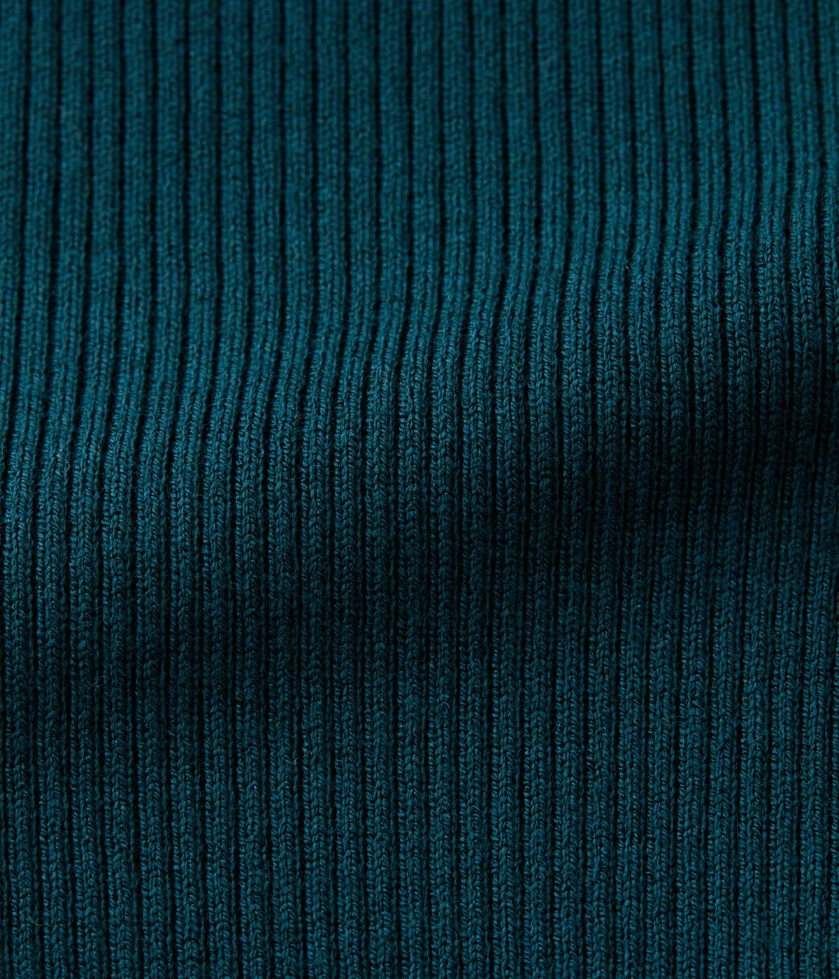 レーヨンとポリエステルを複合したストレッチヤーンを使用。肌触りの良さと上品な微光沢が特徴で、ウールのチクチク感が苦手な方にも安心してご着用いただけます。また、ご自宅で手洗いが可能です。原料のレーヨンはレンチング社のLENZING™ECOVERO™繊維を使用しています。
