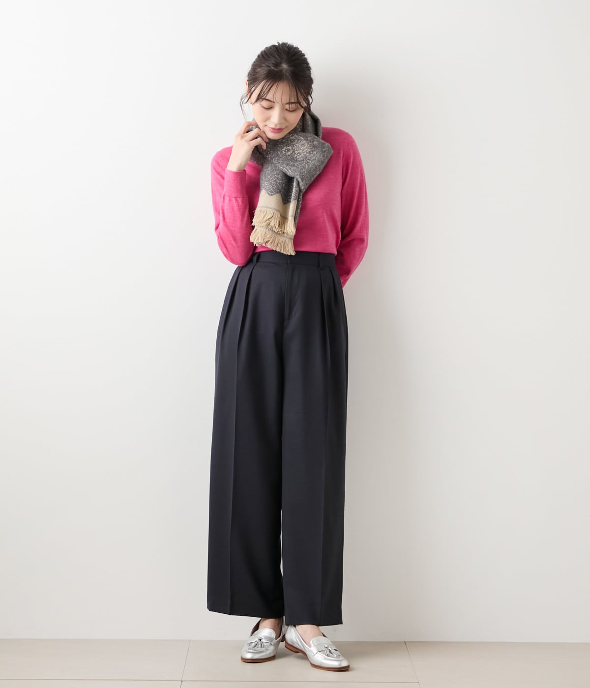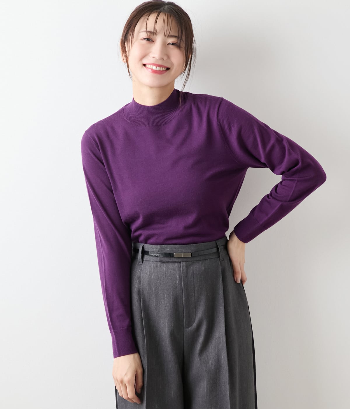 毎年好評のキャッシュウールを使用した、定番ニットプルオーバー。上質素材が映えるシンプルなデザインで、トレンドに左右されず永くご愛用いただけるアイテムです。同素材のカーディガン(品番:54716560)とのアンサンブルスタイルもおすすめ。カラーは定番色から差し色まで豊富に取り揃えた、ライトグレー・ブラウン・ボトルグリーン・ネイビー・パープルに、店舗限定のピンクを加えた全6色展開。