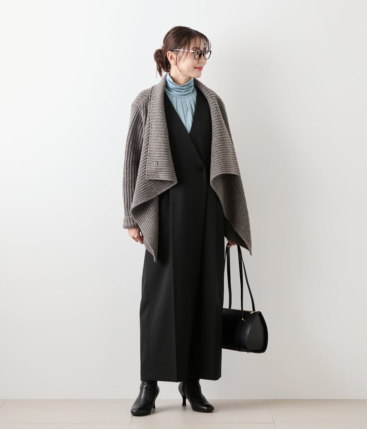 首元まであたたかく包み込む、タートルネックのカットソー。胸元にタック、裾にギャザーを入れてふんわりとさせることで、身体のラインを拾いにくいシルエットに仕上げました。胸元のタックは、ジャケットスタイルにも映える繊細なアクセントに。薄手ながらもあたたかく、着ぶくれを気にせずに冬のレイヤードスタイルをお楽しみいただけます。タートルネック部分は外側に折り込んでも、ゆとりを残して折らずに着用してもバランス良く決まります。
