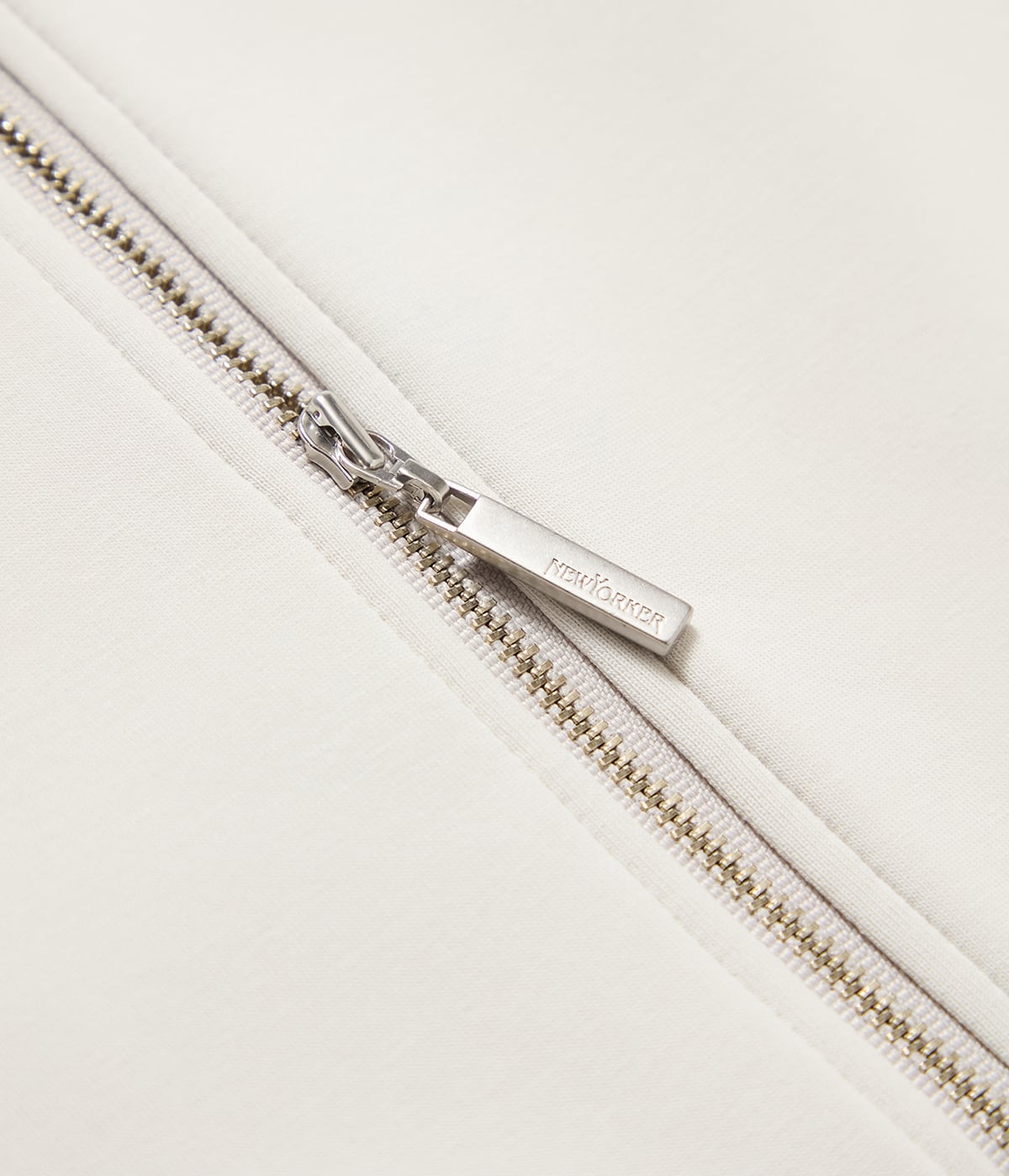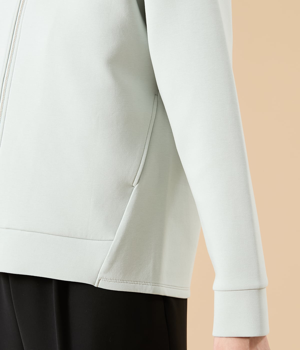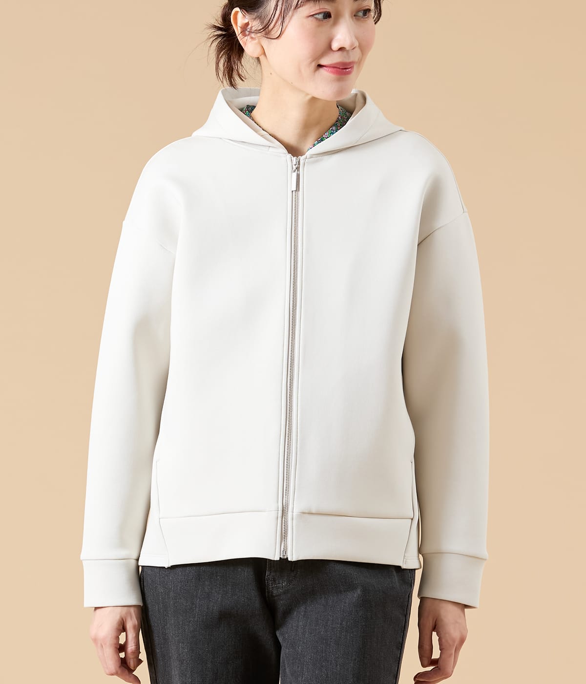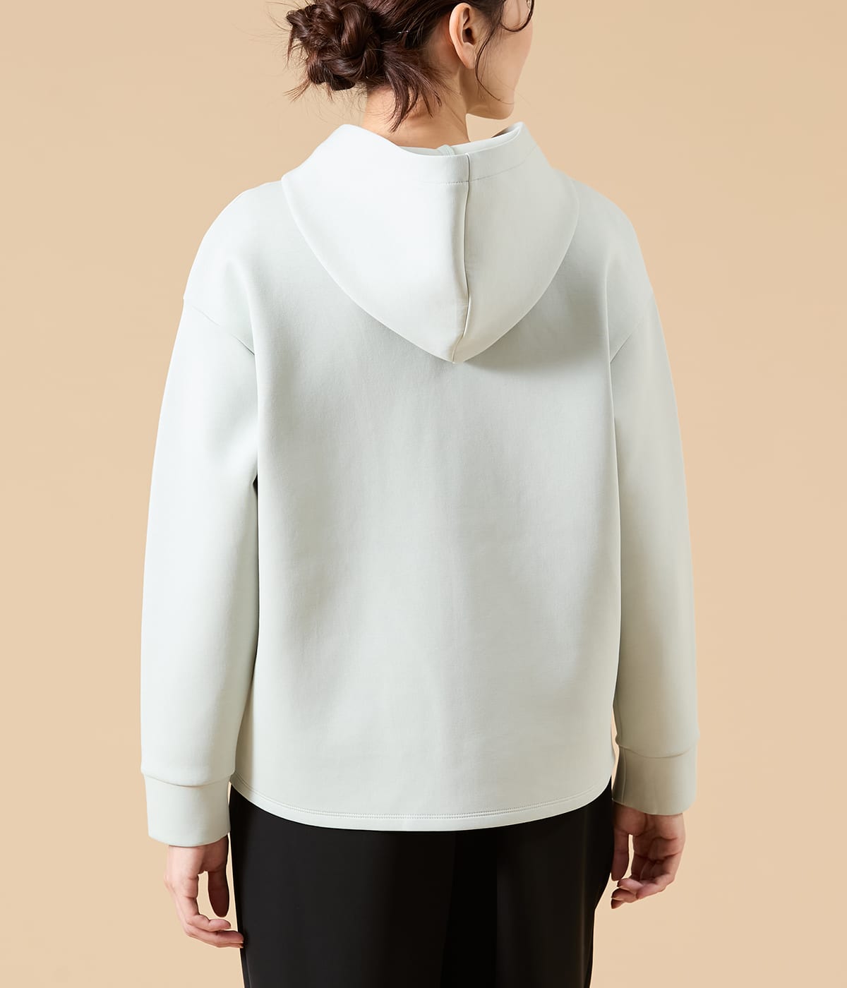 ゆとりのあるサイズ感ながら、脇線を前寄りに切り替えることでシルエットはすっきり。軽く羽織るだけでこなれたバランスが完成する、大人のためのキレイめパーカーです。