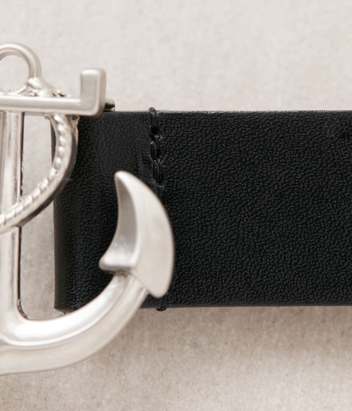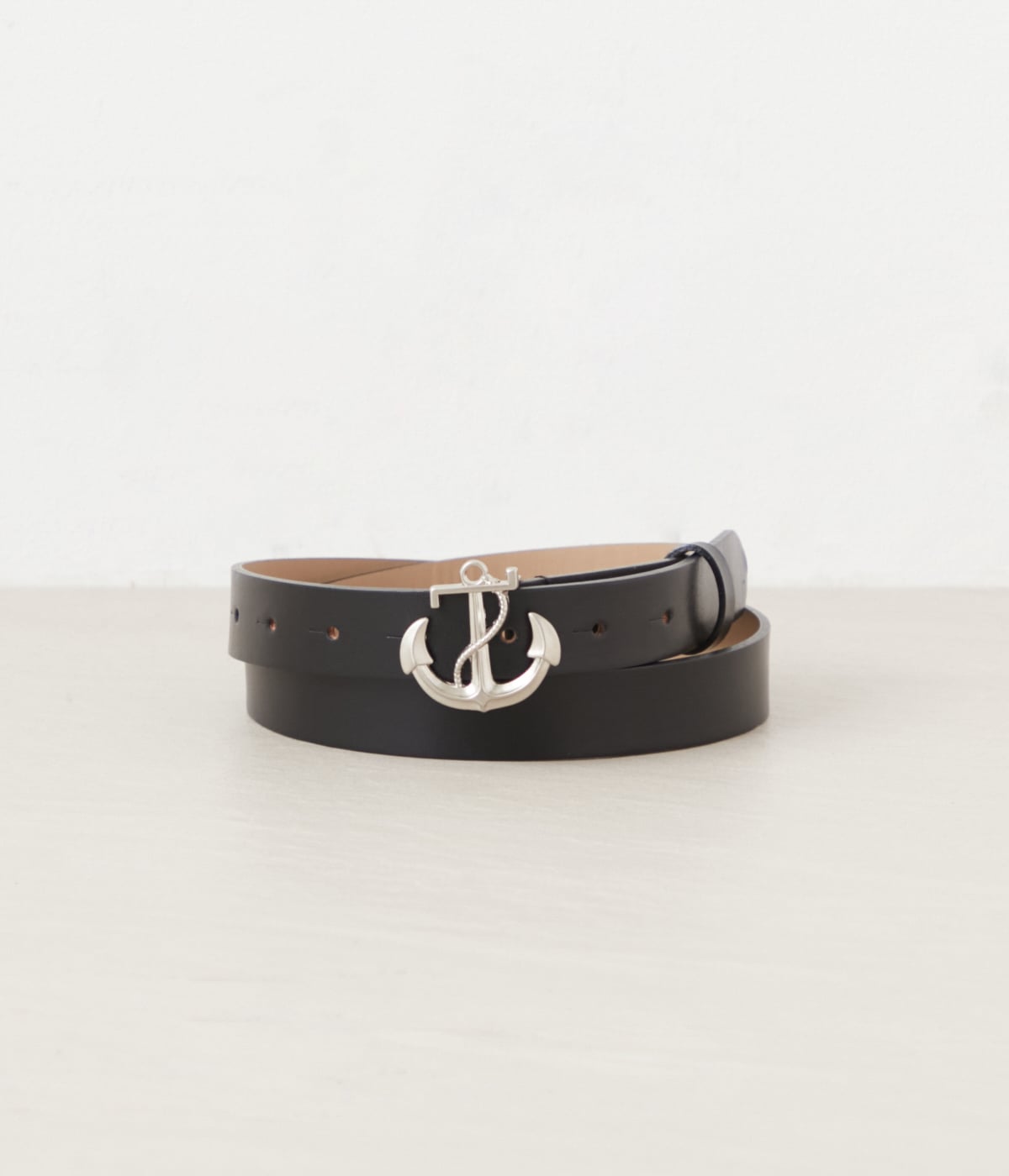 イカリをモチーフにしたバックルが目を惹く、デザイン性の高い日本製レザーベルト。存在感がありながらも光沢を抑えたパーツ使いが、シンプルな着こなしに程よいアクセントを添えてくれます。カラーは軽やかな印象のホワイト、ベーシックに使えるブラックの2色展開。