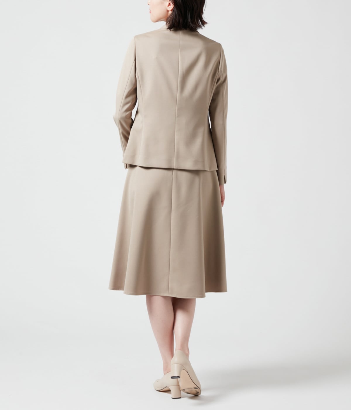 快適な着心地とお手入れのしやすさが嬉しい、セットアップ対応のジャケット。シンプルで汎用性が高く、単品ボトムやワンピースなど幅広いアイテムとのコーディネートが楽しめます。カラーはベーシックに着回せるベージュ、ネイビーの2色展開。