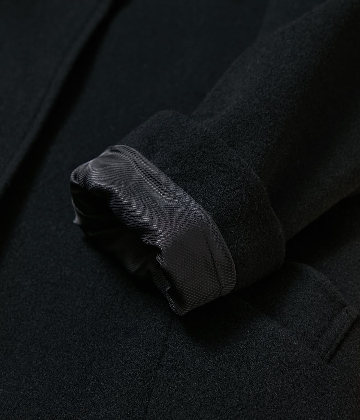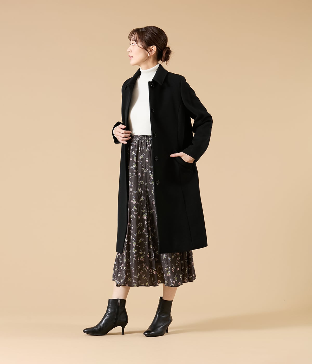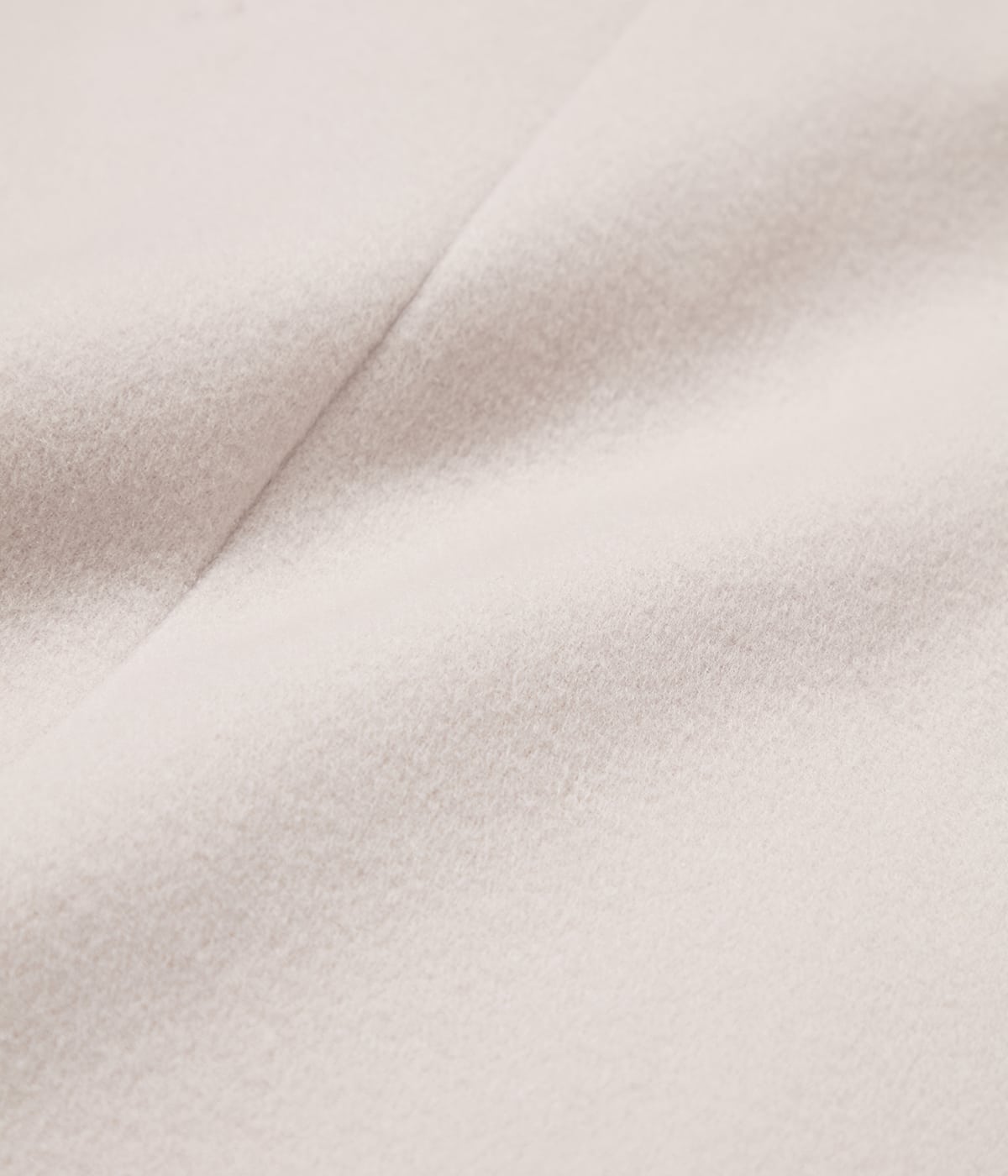 柔らかな起毛感と上品な艶を併せ持つウールシャルムビーバー生地を使用。ふっくらとした風合いが、冬のアウターをより贅沢に仕立てます。