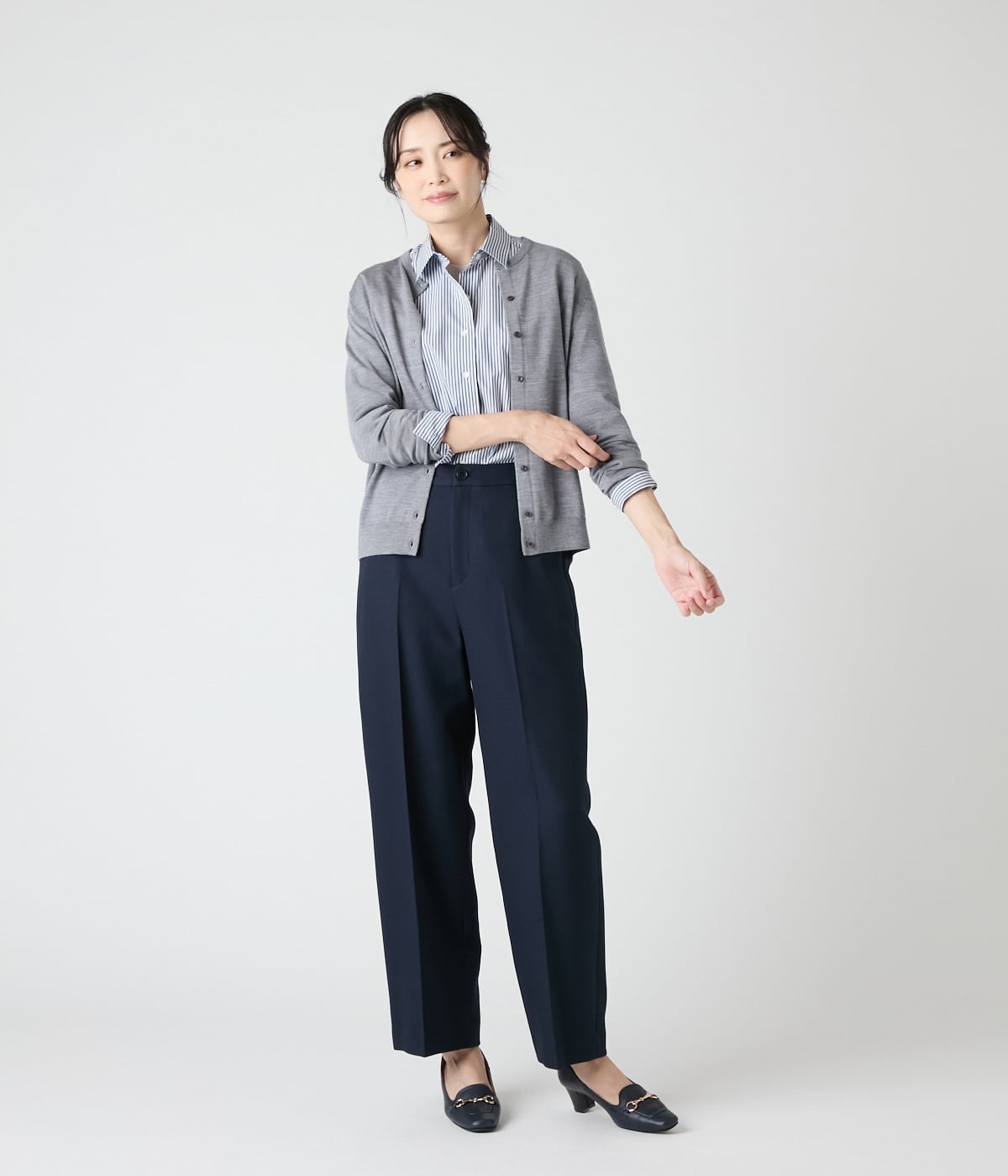ポリエステルの上品な光沢に、コットンのナチュラル感をプラス。快適な着心地が魅力の初秋からロングシーズン活躍してくれる定番アイテムです。また、ご自宅で手洗いが可能です。