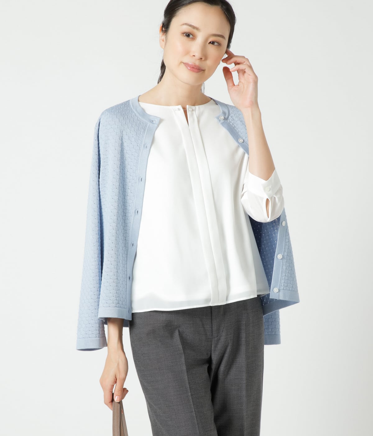 セットアップ(品番:71012401)(品番:71112401)(品番:71212401)(品番:71312401)のインナーにすると上品なオフィススタイルに。