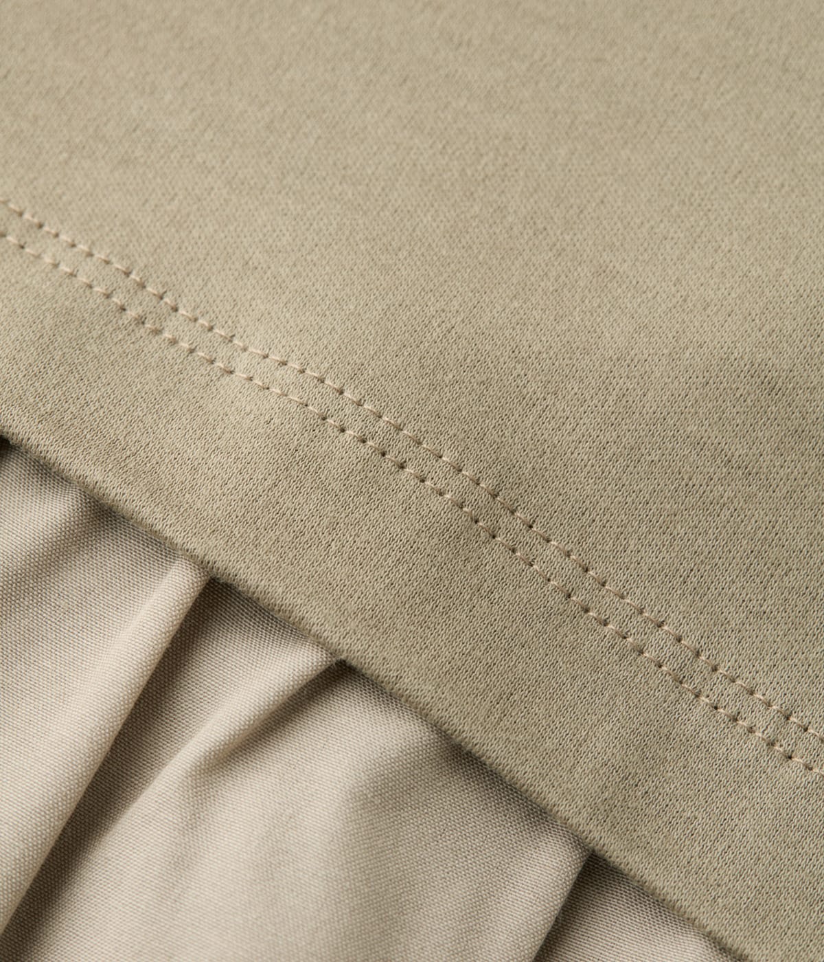 肌あたりがよく、着心地がいいコットンスムース生地を使用し、程よい抜け感を演出してくれるタンブラー加工を施しました。普段使いに最適なデイリー使いしたくなるアイテムです。ご自宅で洗濯機洗い可能です。