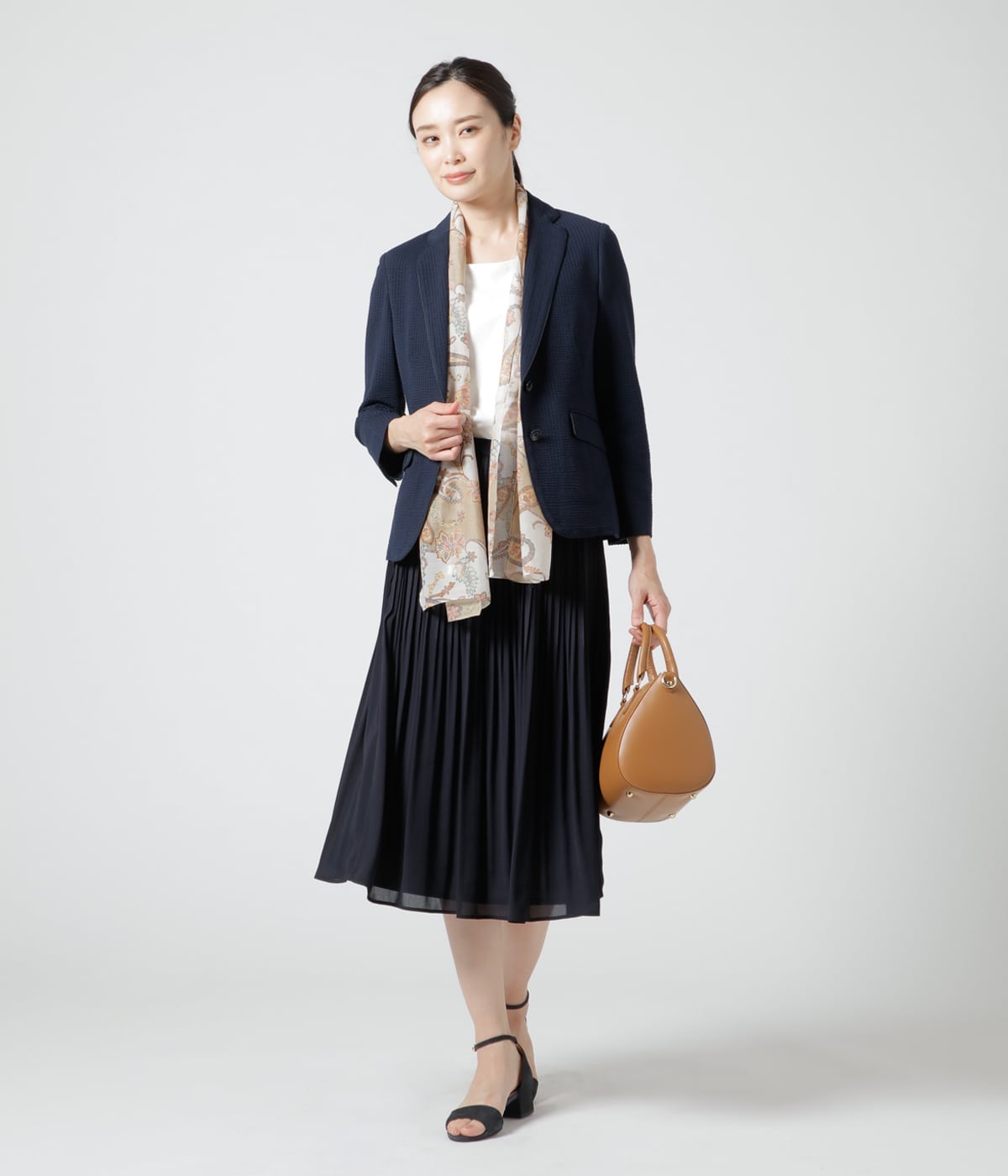 シャイニーなサマーカーディガン(品番:79712903)や花柄ブラウス(品番:79612433)(品番:79642433)を合わせれば、華やかお出かけスタイルに。ジャケット(品番:79112431)(品番:79122431)を羽織った、きれいめお仕事スタイルも素敵です。