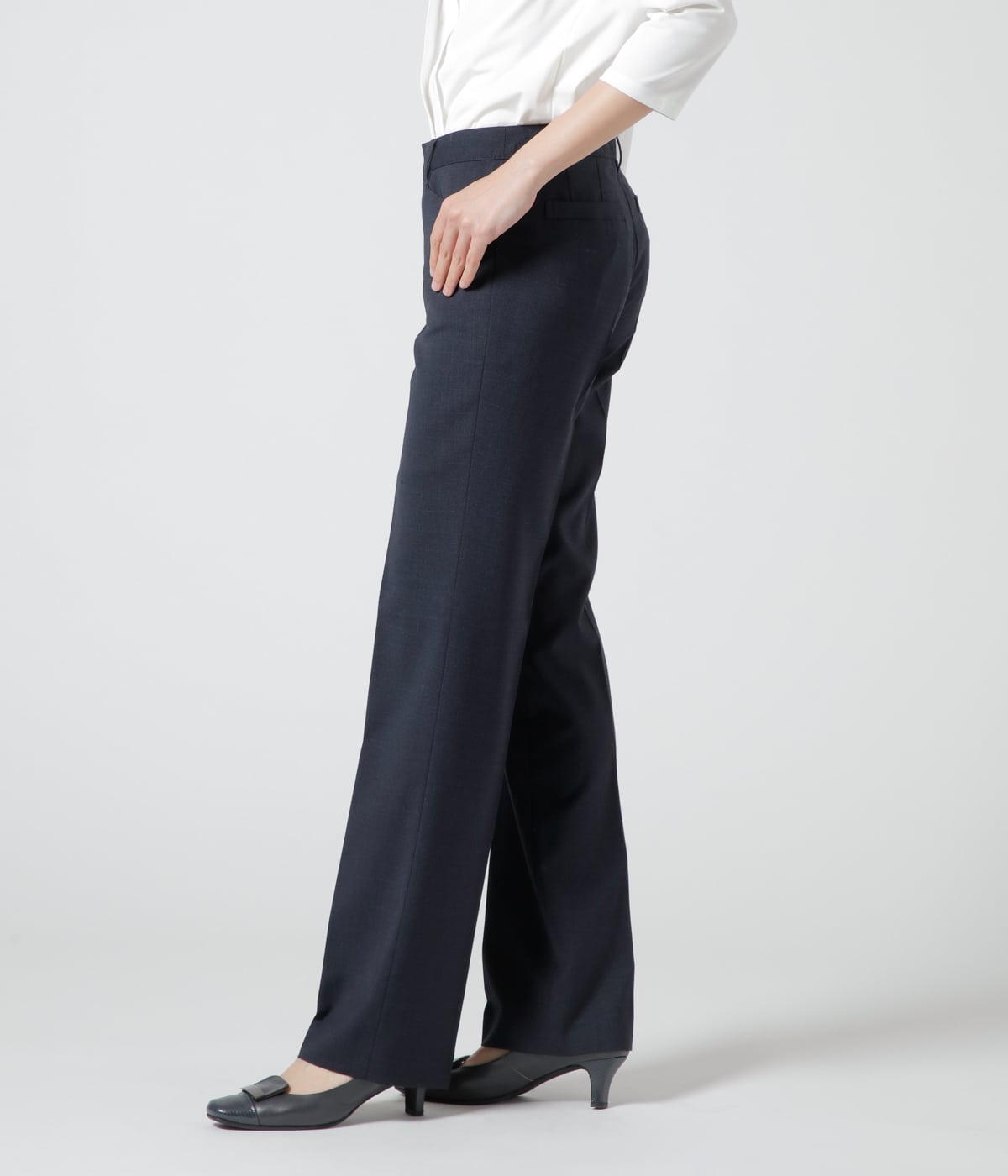 細身のストレートシルエットにセンタープレスが入ったフルレングスパンツ。縦のラインを強調し、すっきりとしたレッグラインを演出します。裏地あり。ポケットあり。