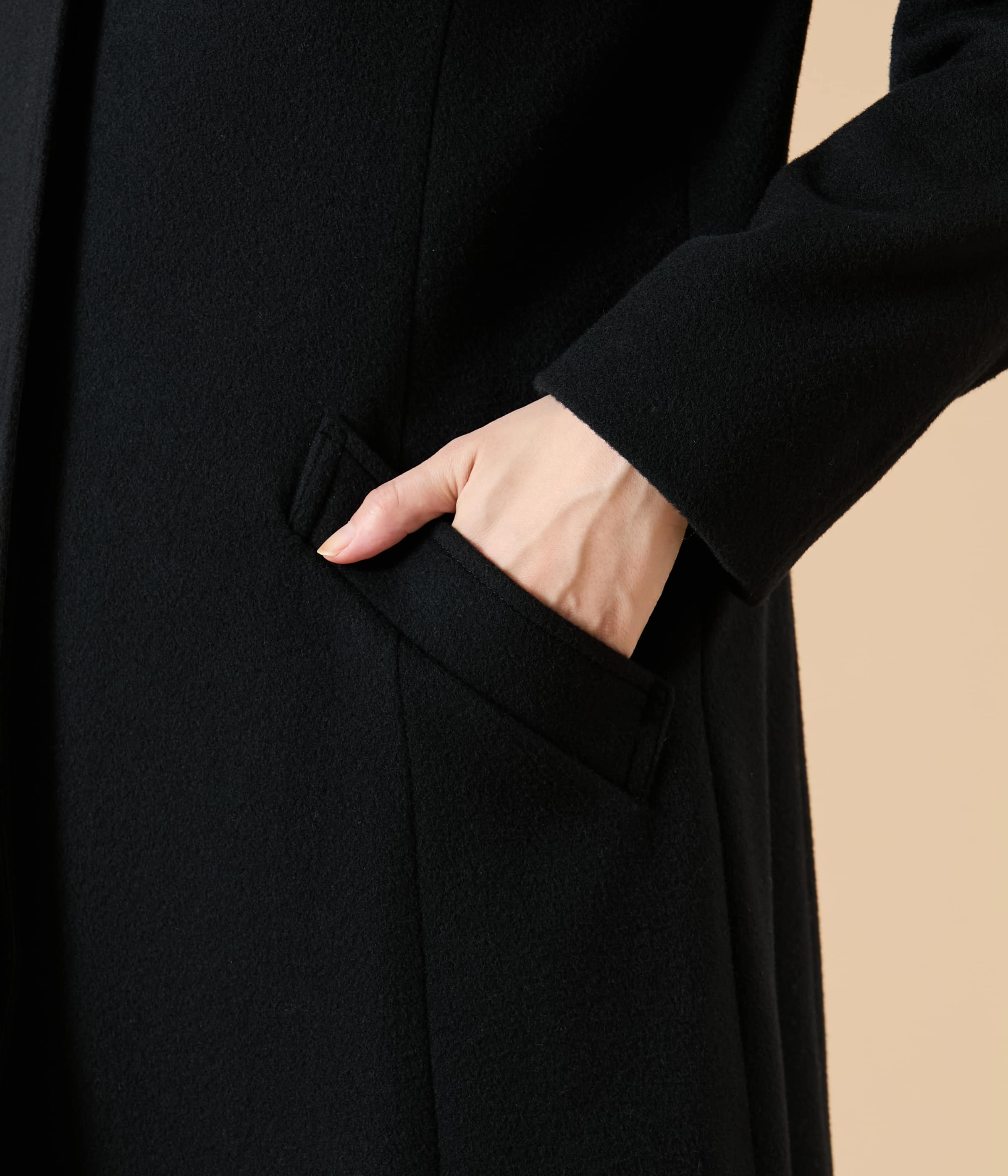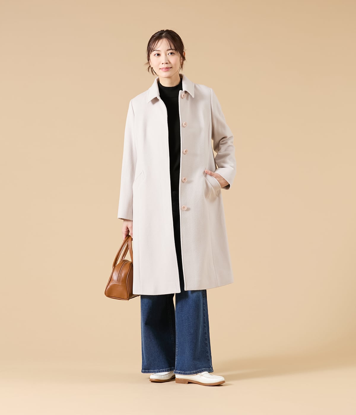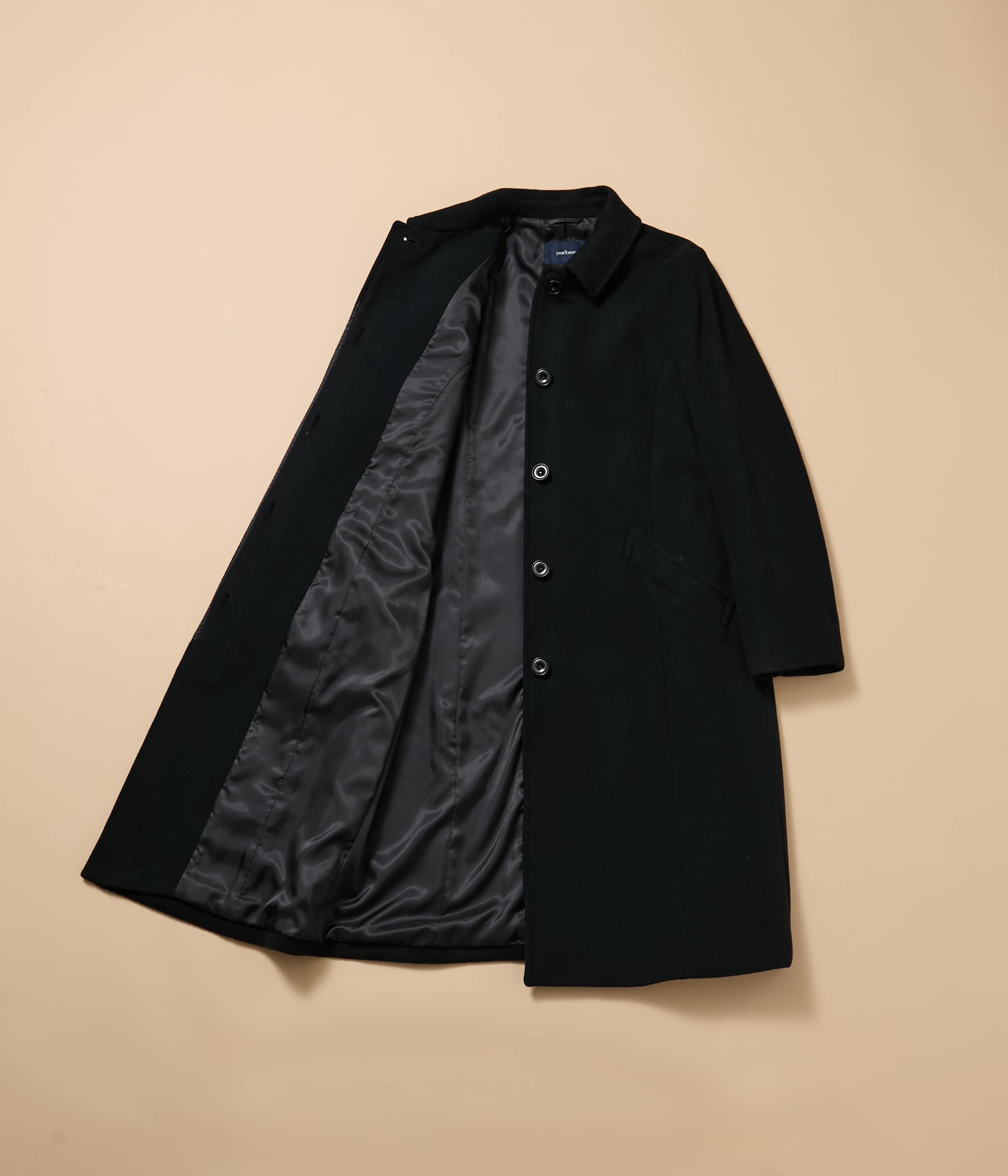 柔らかな起毛感と上品な艶を併せ持つウールシャルムビーバー生地を使用。ふっくらとした風合いが、冬のアウターをより贅沢に仕立てます。