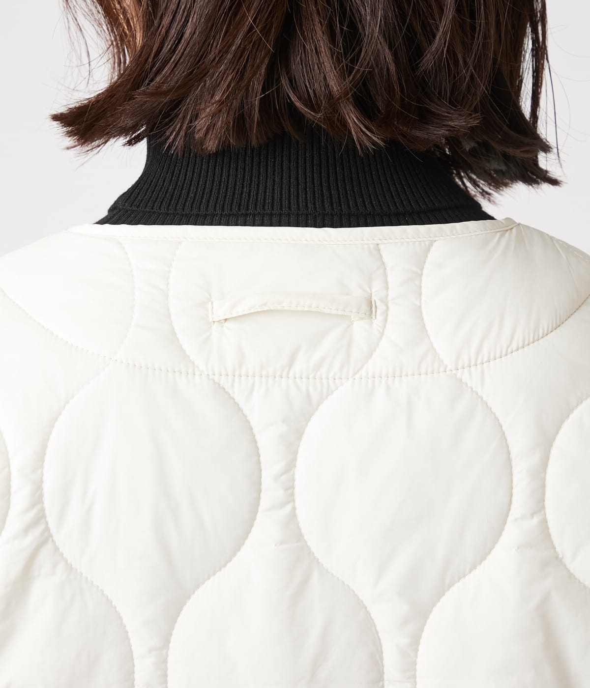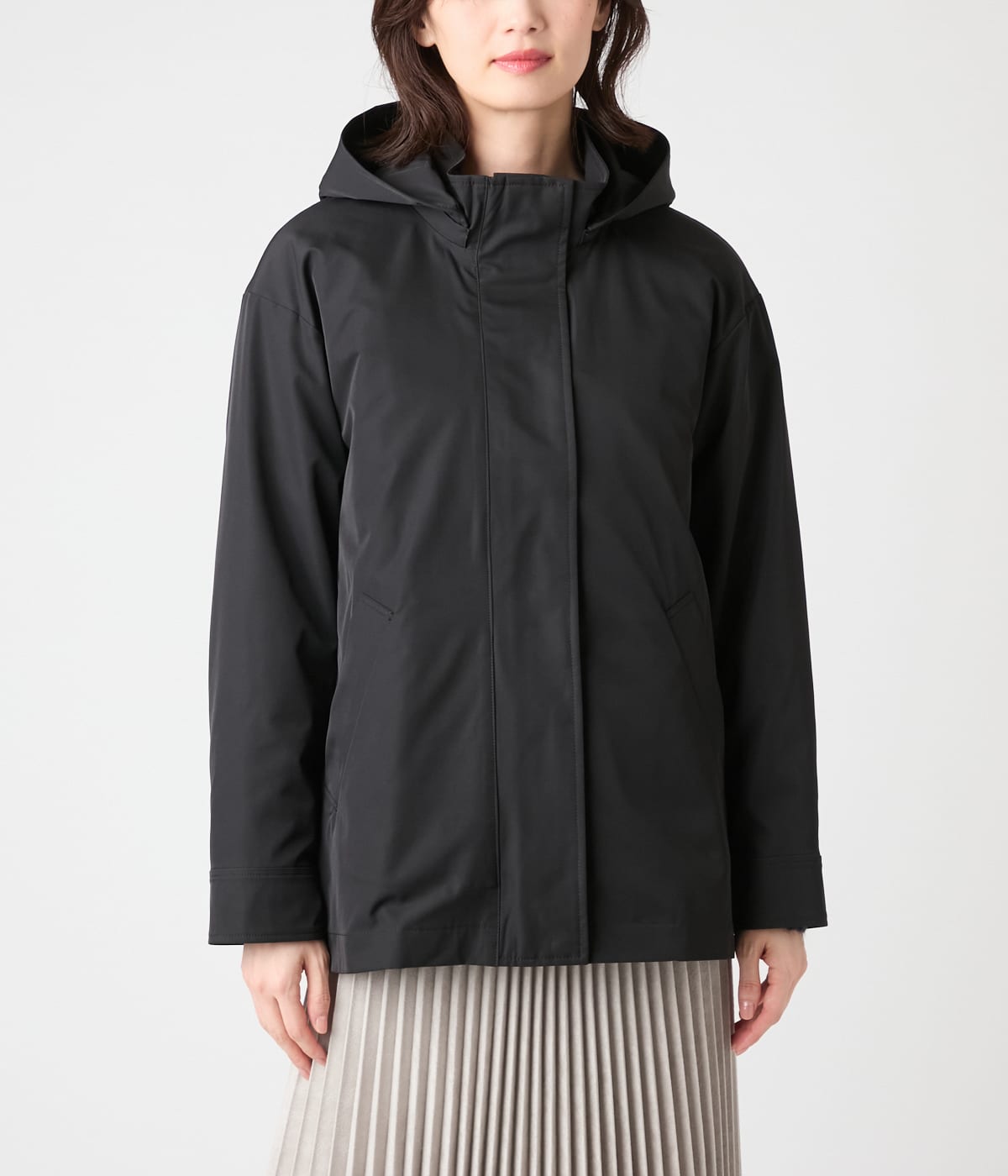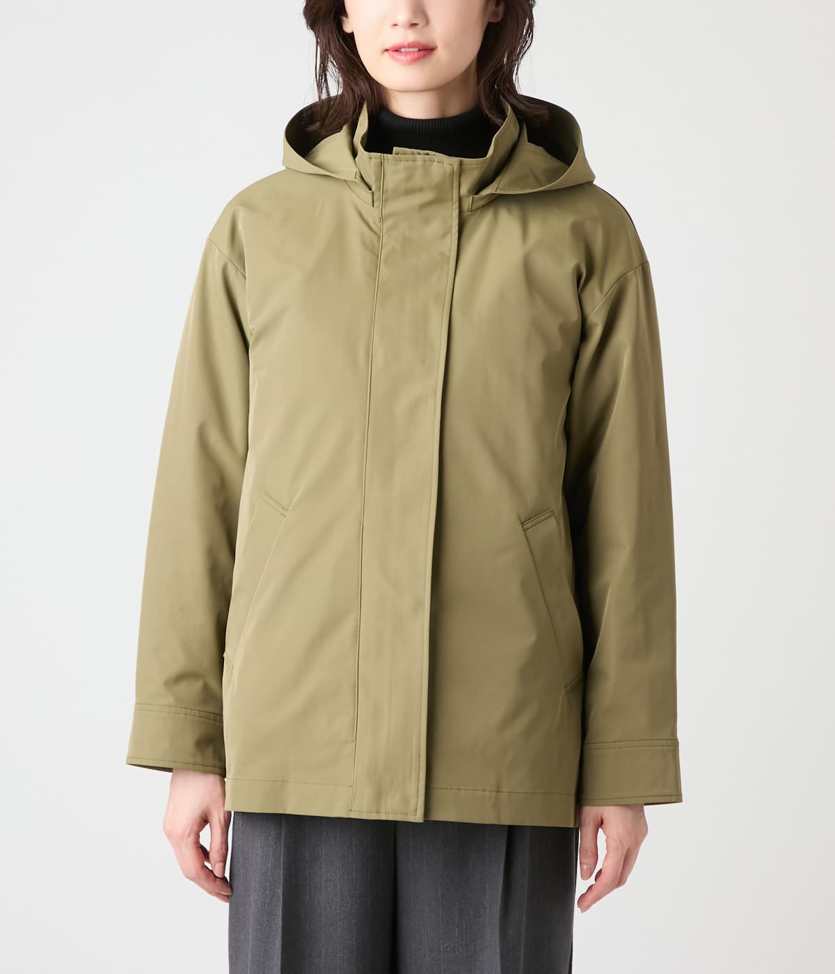 本体は、ヒップが隠れる着丈が嬉しいフード付きアウター。ライナーには、キルティングで単品でも合わせやすいシルエットにこだわりました。気温調整のしやすい優秀アウターです。ポケット付き。