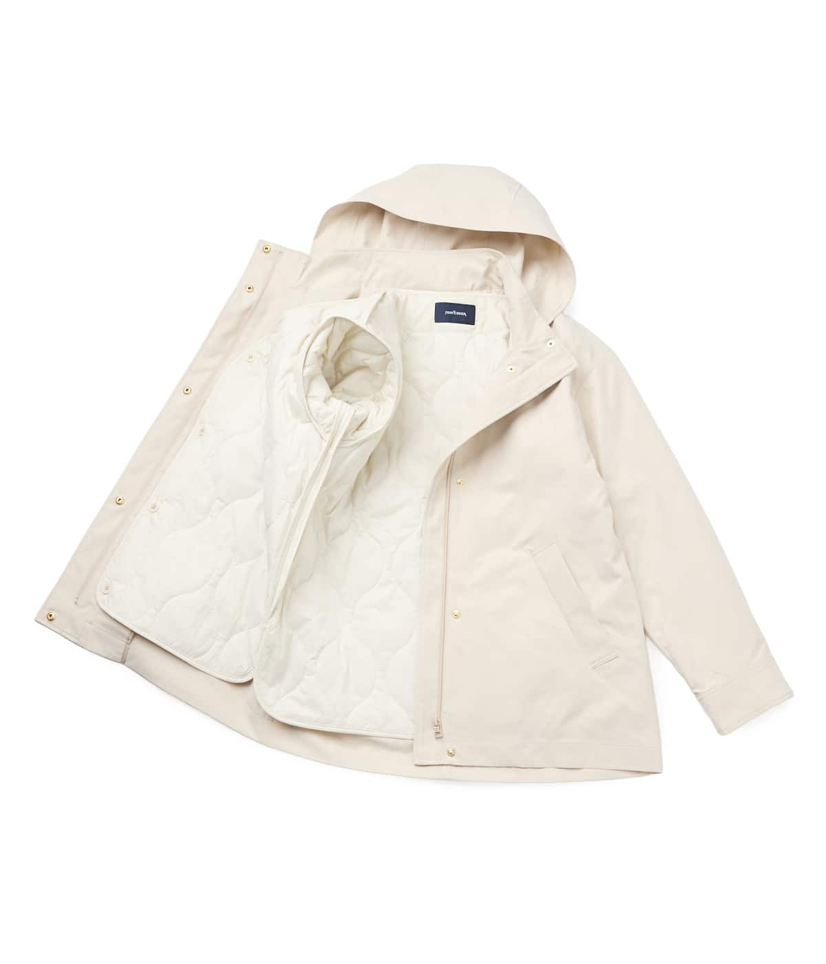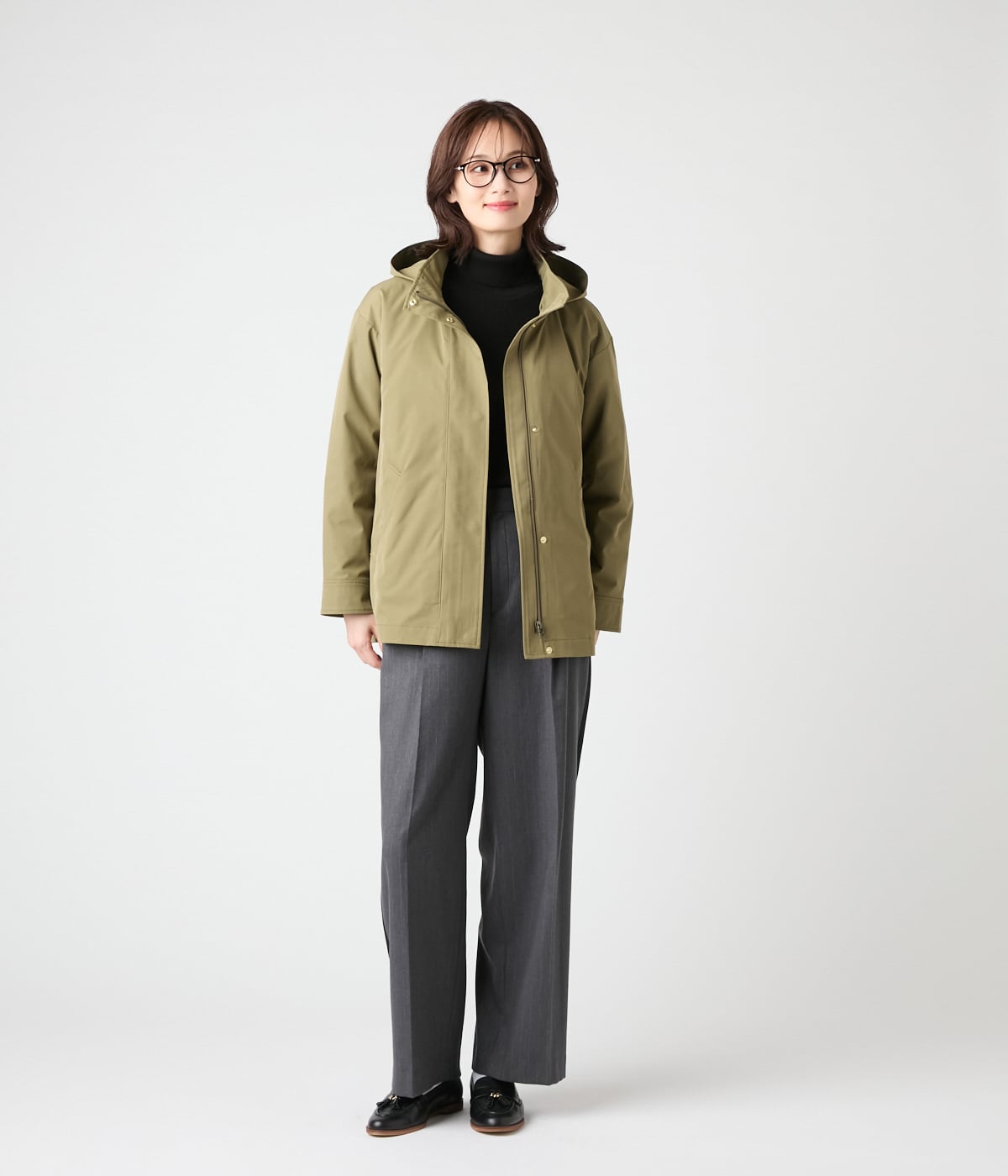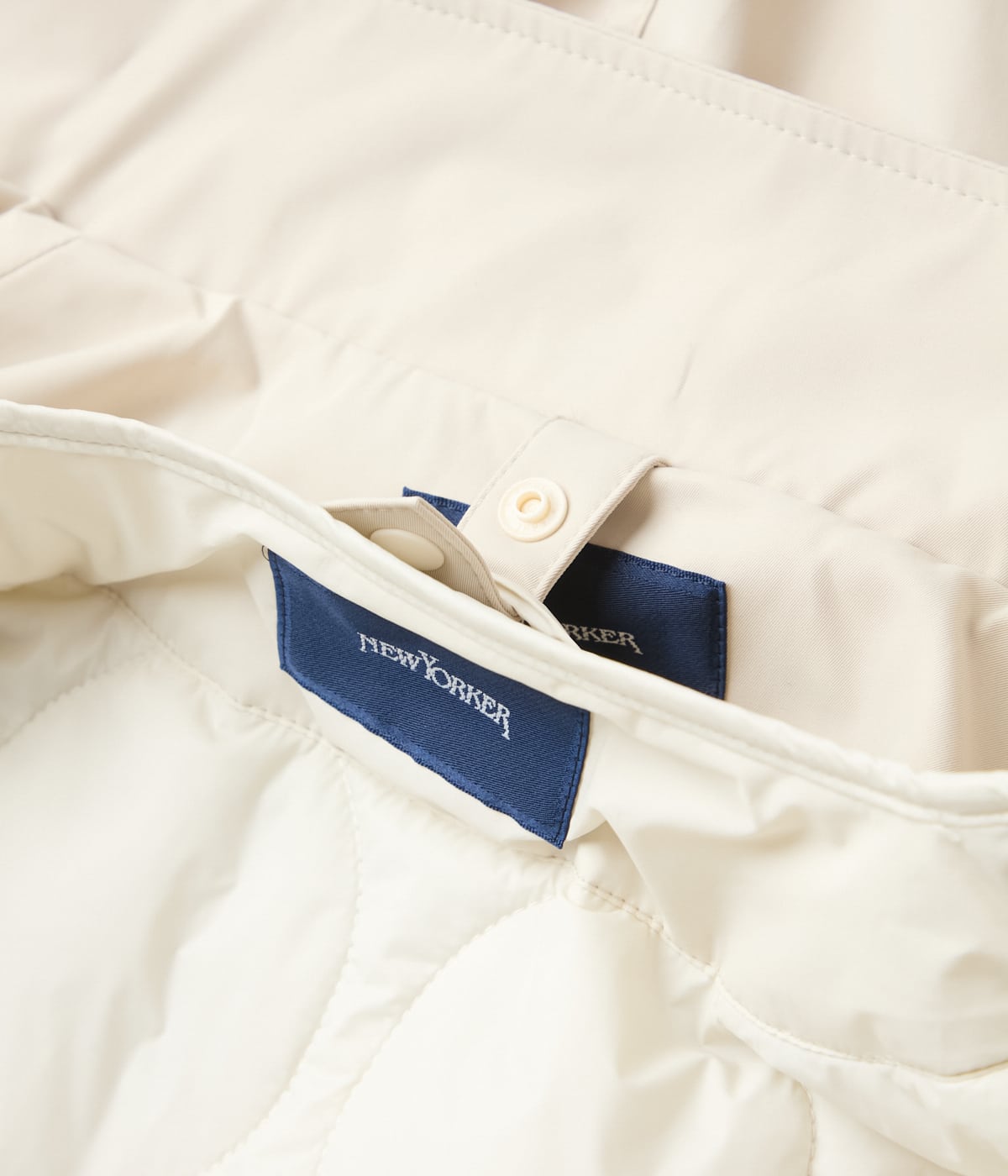 付け外し可能なキルトライナー付きで、重ねてもそれぞれ単品でも着回しの効くマルチウェイアウター。フードも取り外すことができ、季節やシーンに合わせて幅広く活躍するアイテムです。カラーはブラック、アイボリー、カーキグリーンの3色展開。