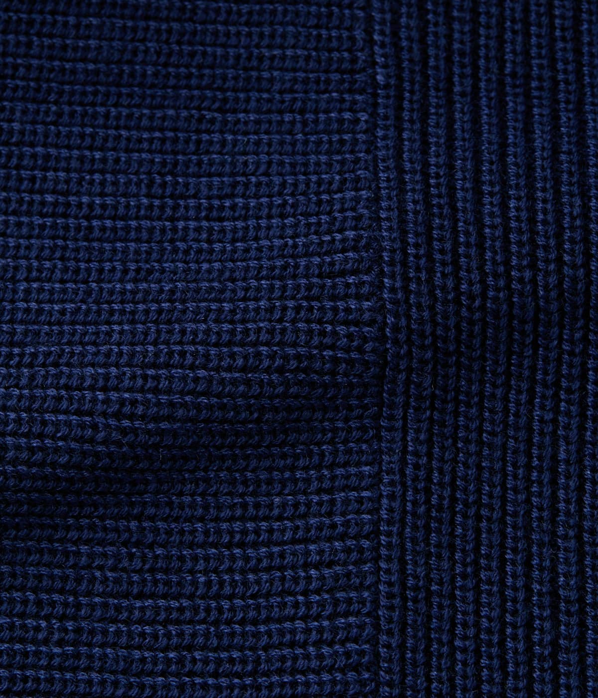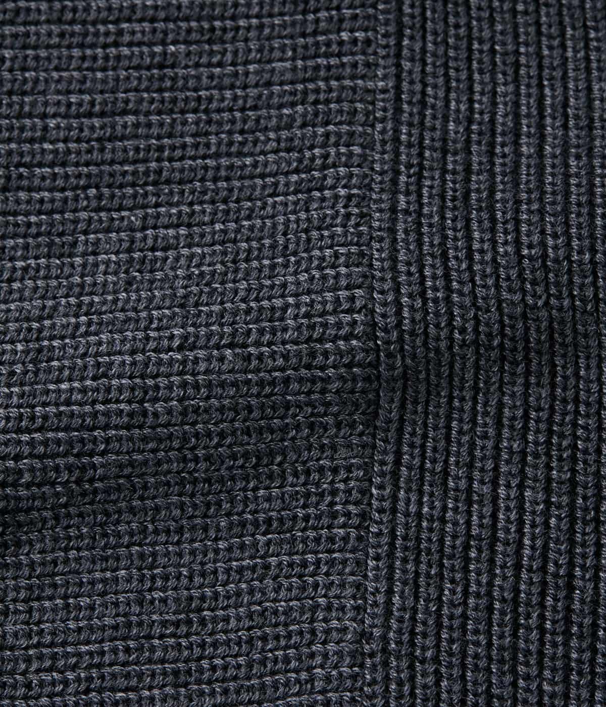 ポリエステルベースにアクリル、ナイロン、ウールを混紡した素材。上品な微光沢と柔らかいタッチが特徴で、秋口からお召しいただけるライトな素材感です。また、ご自宅で手洗いが可能です。