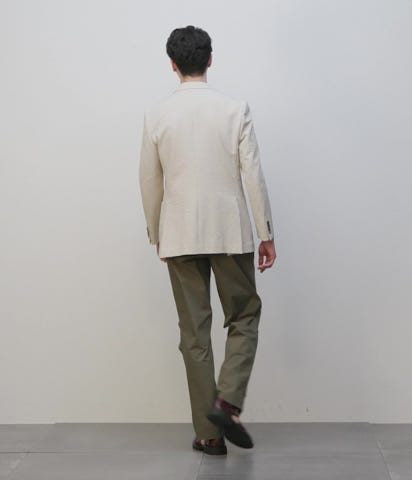 見た目も着心地も爽やかなサッカージャケット。イタリアのインポート生地を使用した高級感のある1着で、品のあるスタイリングを演出してくれます。春先から夏まで長らく着用でき、ドレッシーな装いからカジュアルスタイルまで活躍します。