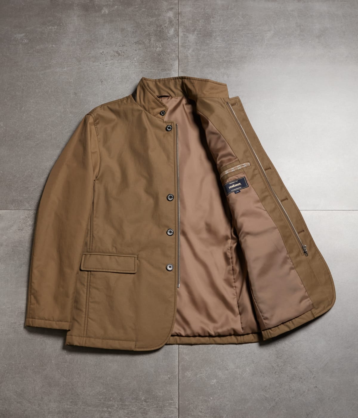 高級合繊メーカーとして知られるOlmetex社の素材を使用したトリッパーズアウター。合繊と中わたを組み合わせ、軽さと暖かさを兼ね備えた高級感のあるアウターに仕上げました。旅行などのカジュアルスタイルだけでなく、通勤でも羽織れる便利なアウターです。