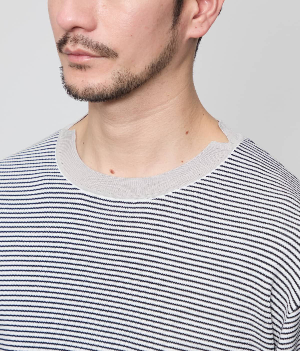 ミリタリーニットから着想を得た海軍ニットTシャツ。Tシャツデザインでありつつ質感はニットで仕上げているため、一枚着としてもインナーとしても活躍します。春にはTシャツと重ね着して着用することもおすすめです。