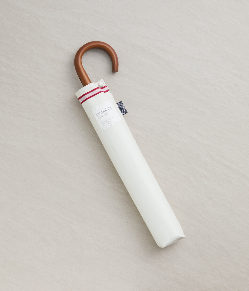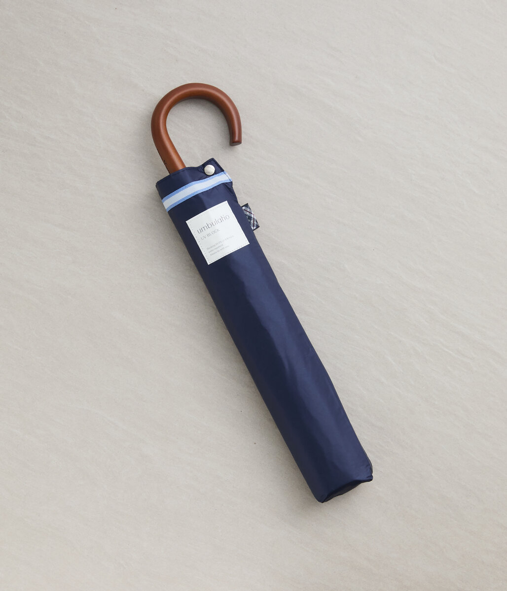 手首や鞄に掛けやすい形状の曲がり手元がポイント。木製のため、きちんとしたシーンにも寄り添ってくれます。