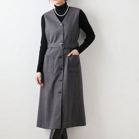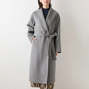 都会的な洗練を纏うグレーのロングコート。細番手ウール×ナイロンのリバー素材で、軽やかさとあたたかさを両立。春はホワイトのパンツを合わせるだけで、装いに新鮮な抜け感が生まれます。
