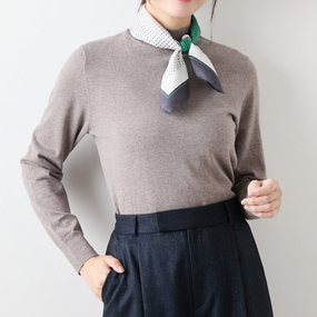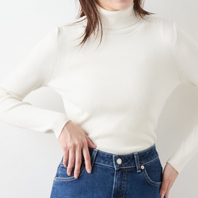 天然の柔らかさと合繊のしなやかさを持たせたビエラ素材を使用。ほどよいシアー感で、冬の装いに軽やかな抜け感をプラス。冬のワイドパンツ×ニットタートルに合わせれば、春を先取りしたレイヤードスタイルが完成します。