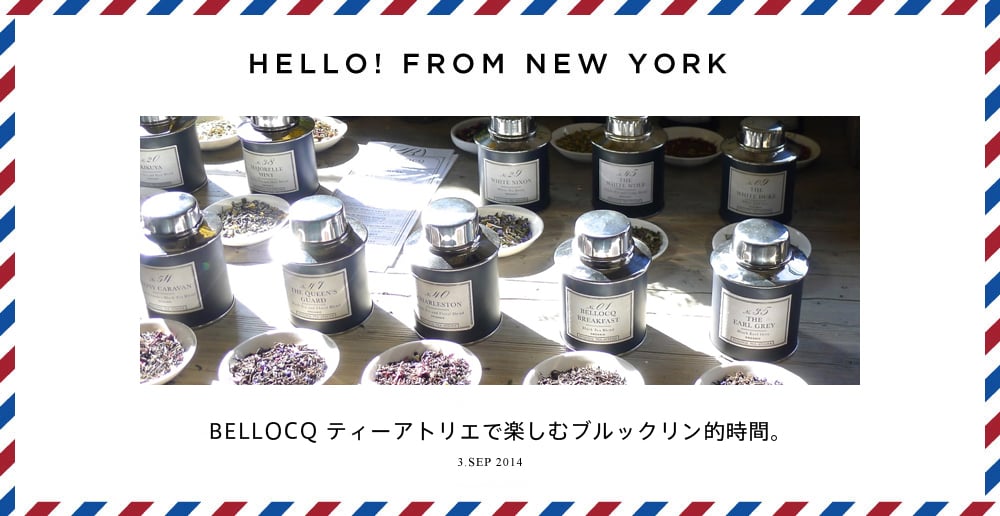 今や観光地化してしまったといってもいいブルックリンのウィリアムズバーグを北へ、マッカレンパークを越えたあたりから少し”かつての”ブルックリンらしい、よりローカル志向でゆるやかな雰囲気になってきます。この「グリーンポイント」と呼ばれるエリアにも、最近ではいろいろなショップやレストランが出来始めていますが、今回はブレンドティの専門店「BELLOCQ Tea Atelier(ベロック ティー アトリエ)」をご紹介しましょう。